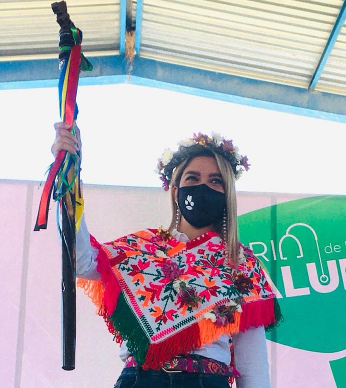 BASTON DE MANDO QUE ENAMORÓ A PRIMERA DAMA DEL ESTADO ES OBRA DEL MTO. VEGA DÍAZ ÉBANO, SLP.- De un tamaño de 95 centímetros de altura y elaborado a base de madera de árbol de ébano, el brillante bastón de mando con el que se le distinguió a la Presidenta Estatal del Sistema para el Desarrollo Integral de la Familia, Lic. Ruth Mirian González Silva, es obra del reconocido artista y maestro Humberto Vega Díaz. Dicha obra genuina y naturalmente artesanal, de creatividad e imaginación convertida en realidad por el volar de las manos de su autor, lleva impresa en su madera bañada en barniz de poliuretano el croquis del estado potosino conocido como la figura del perrito. Esto es en la parte de la empuñadura acompañada con las siglas SLP en relieve, en alusión a esta entidad federativa. En la parte superior y en color amarillo se aprecia la división política de este municipio, Ébano. Por igual, lleva incrustaciones de pedrería color blanco con tornasoles. Y por un costado le cuelgan listones coloridos y emblemáticos de la etnia tenek. Tres días le llevo al popular artista y profesor de la secundaria “Melchor Ocampo”, transformar su imaginación en esta apreciada obra. Desde los 13 años, el maestro Humberto Vega se dedica apasionadamente al arte de esta índole, y muchas de sus obras han caído en manos de personajes como Juan Miranda Uresti, fallecido líder de la Sección 26 del SNTE, Juan Silva Villanueva, dirigente moral de la Sección 3 del Sindicato Petrolero, Felipe Rosales Ahumada, ex alcalde, entre otros. Y por supuesto, la alcaldesa Ma. Soledad Carreño Linares, fue distinguida con esta presea artesanal, símbolo del poder, libertad, justicia y gobierno, por parte del Concejo Indígena de Ancianos de la comunidad de Ébano. Otras obras de Vega Díaz han traspasado las fronteras y han llegado hasta Miami y Chicago de la Unión Americana, y algunos estados del país como Monterrey Nuevo León.
