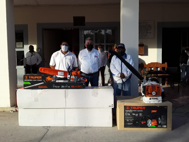 Equipan departamento de Parques y Jardines Entrego el Presidente Municipal de #Tamuín, Ing. Francisco Joel Limas Rivera, equipo y herramientas para el departamento de Parques y Jardines con el objetivo de mejorar las condiciones de trabajo. El director de Parques y Jardines, Gustavo Ramírez Ramírez, recibió el equipo necesario para el chapoleo y limpieza de las áreas verdes, dicho equipo será utilizado por el personal que a diario realiza labores de mantenimiento en áreas verdes. Se les doto de una maquina chapoleadora, desbrozadoras y otras herramientas que permitirán al personal mejorar el trabajo que se ha venido haciendo por la actual administración. Gustavo Ramírez, explico que, el departamento se compone de 12 personas que a diario salen a limpiar los parques, áreas verdes, espacios públicos y dando apoyo a la ciudadanía que solicita algún servicio. Pidió a la ciudadanía que apoyen las acciones de limpieza y cambio de imagen en el primer cuadro de la ciudad y eviten tirar basura en la plaza de la Amistad. #JuntosPorUnCambio #AdministracionMunicipalTamuinAdministracion20212024