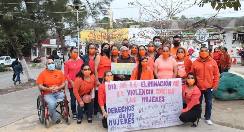 EN ANARANJADA CAMINATA ÉBANO SE MANIFIESTA CONTRA LA NO VIOLENCIA EN MUJERES Y NIÑAS En nutrido contingente encabezado por las Autoridades Municipales lideradas por María Soledad Carreño Linares, y con la participación de regidores y funcionarios, 50 alumnos y maestros del Colegio de Bachilleres No. 15 y el Colegio de Estudios Científicos y Tecnológicos del Estado de San Luis Potosí -CECyTE- No. 5, Ébano se manifestó en contra de la Violencia a la Mujer y las Niñas, acto enmarcado en la Campaña Naranja ÚNETE, decretada por la ONU. Resaltando el color naranja en blusas, playeras y cubrebocas los participantes de la caminata -mujeres y una parte hombres-, salieron a las 8:30 horas desde las faldas del emblemático cerro de la colonia “18 de Marzo” para llegar a la plazoleta Fundadores, pasando por avenida Vicente Guerrero y Benito Juárez donde se realizó un sustancioso programa en cuyo mensaje la Jefa del Poder, María Soledad Carreño Linares, pidió a las mujeres a alzar la voz y hacer valer sus facultades y derechos ante una sociedad igualitaria. Anunció, en razón de la importancia que reviste este sector en el desarrollo de los pueblos, llevar a cabo eventos de mayor relevancia los días 25 de cada mes, declarado por la ONU y en honor de tres hermanas dominicanas asesinadas en esta fecha pero en el mes de noviembre del año 1960, por orden del dictador Rafael Leónidas Trujillo. Correspondió al Instituto de la Mujer ofrecer una reseña histórica con relación a esta fecha. También tuvo intervención la Secretaría General de la gestión local.