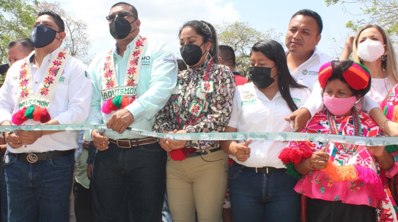 INAUGURARON LA MODERNIZACIÓN DE CARRETERA PRINCIPAL A AQUISMÓN El gobernador de San Luis Potosí, José Ricardo Gallardo Cardona, inauguró esta tarde la modernización de la carretera principal de acceso al Pueblo Mágico de Aquismón, que –gracias a una inversión superior a los veinte millones de pesos- permitirá un desplazamiento con mayor fluidez y seguridad, tanto para los automovilistas como para los peatones. Junto a las autoridades locales, el mandatario cumplió en apenas seis meses de gobierno, lo que desde hace años era un sueño acariciado por los aquismonenses, por ello el corte del listón se dio en un marco de agradecimientos de la ciudadanía y prestadores de servicios, principalmente transportistas y hoteleros. La ruta primordial, que lleva desde la carretera México-Laredo (en el Crucero de Aquismón) a la cabecera municipal, fue rehabilitada en una longitud de casi cuatro kilómetros, tres de ellos con concreto hidráulico estampado, además de que se le hicieron cortes, rellenos y modificaciones de trazo para mejorar ángulos, peraltes y visibilidad en las curvas; y se le construyeron banquetas.