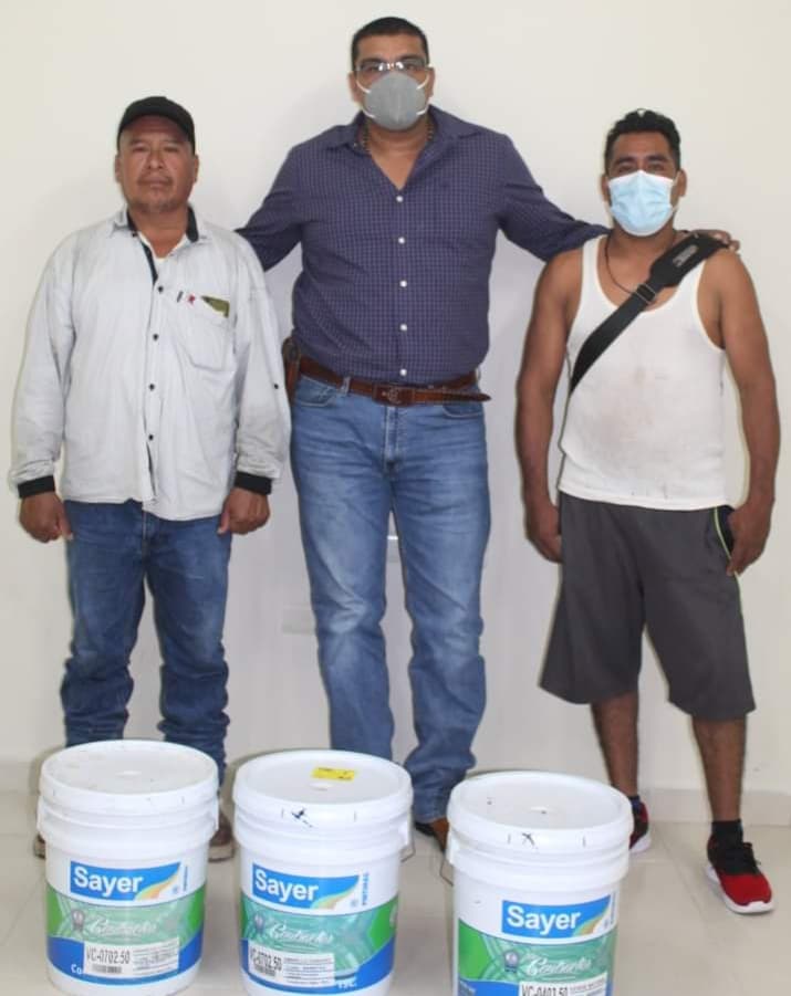 APOYO CON PINTURA AL COMITÉ DE FESTEJOS DE LANIM (TANCUIME) El presidente municipal Cuahutémoc Balderas Yáñez entregó esta mañana un apoyo con pintura a las autoridades de Lanim (Tancuime), que será aplicado en la rehabilitación de la capilla del lugar en honor de “San José Obrero”. El Ayuntamiento atendió la petición, toda vez que el próximo sábado 30 se realizará la fiesta patronal a partir de las 6 de la tarde, culminando después de las 10 de la noche con la misa tradicional; los representantes agradecieron la oportuna aportación. El sitio de celebración religiosa tiene aproximadamente cuarenta años de construido, por lo que era necesario un arreglo, de modo que se encontrara en condiciones para la referida conmemoración, a la que acude también gente de los barrios vecinos, como Bichamte.