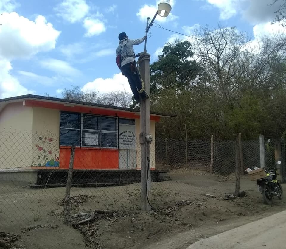 JUZGADOS, COMUNIDADES Y ESCUELAS SON BENEFICIADOS CON ALUMBRADO El departamento de Alumbrado del Ayuntamiento ha seguido trabajando arduamente para subsanar los requerimientos de luminarias en diferentes zonas del municipio, así como en algunas instituciones. Es así que en Barrio Bichamte quedó concluido el servicio al cien por ciento, e igualmente se laboró en el Barrio Lanim, de Tancuime; lo mismo en el sector de Tampaxal: Con San Juanita, Barrio La Cruz, y La Soledad. También se atendió la solicitud del Juzgado de Tampate Primera Sección, para dejar habilitadas todas las lámparas; así como el sistema eléctrico del Centro de Atención Múltiple (CAM) “Louis Braille”, donde el servicio estaba interrumpido.
