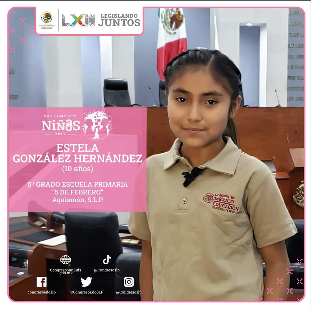 AGRADECIERON NIÑA DIPUTADA Y SU MAESTRA APOYO DEL AYUNTAMIENTO Quizás el viaje puedo ser prolongado, y un poco agotador por la falta de costumbre, pero a Estela González Hernández no parecía importarle demasiado: Estaba contenta con la experiencia de haber sido diputada local por un día, y de haber llevado hasta la tribuna del Congreso del Estado el sentir de los niños del XIV distrito (que agrupa a los municipios de Aquismón, Axtla, Huehuetlán, Tancanhuitz, y Xilitla). La pequeña de once años de edad y alumna de la Primaria Indígena “5 de Febrero” de Barrio La Cruz, mantuvo su jovialidad cuando recordó los obsequios que le entregaron el gobernador Ricardo Gallardo y la diputada Claudia Tristán durante su estancia en San Luis Potosí. Y su directora María Elena Cruz Alfonso –quien la acompañó en esta singular vivencia- agradeció el apoyo que el Ayuntamiento de Aquismón y el DIF Municipal le otorgaron para su transporte. Estela regresó feliz a contar su sentir a la zona Tampaxal, donde reside, junto a los suyos: Su padre Cristóbal González, quien labora en la albañilería; su madre Ignacia Hernández, ama de casa; y junto con sus hermanos mayores, uno de ellos dedicado al corte de caña y otro a la siembra de sábila, en tanto que su hermana, es jefa de familia. Su vida ya no será igual, ahora es un orgullo para sus cercanos, e incluso un ejemplo a seguir. Por niñas como ella, y en fechas como ésta, es cuando las congratulaciones adquieren un mayor sentido: Feliz Día del Niño, Estela.