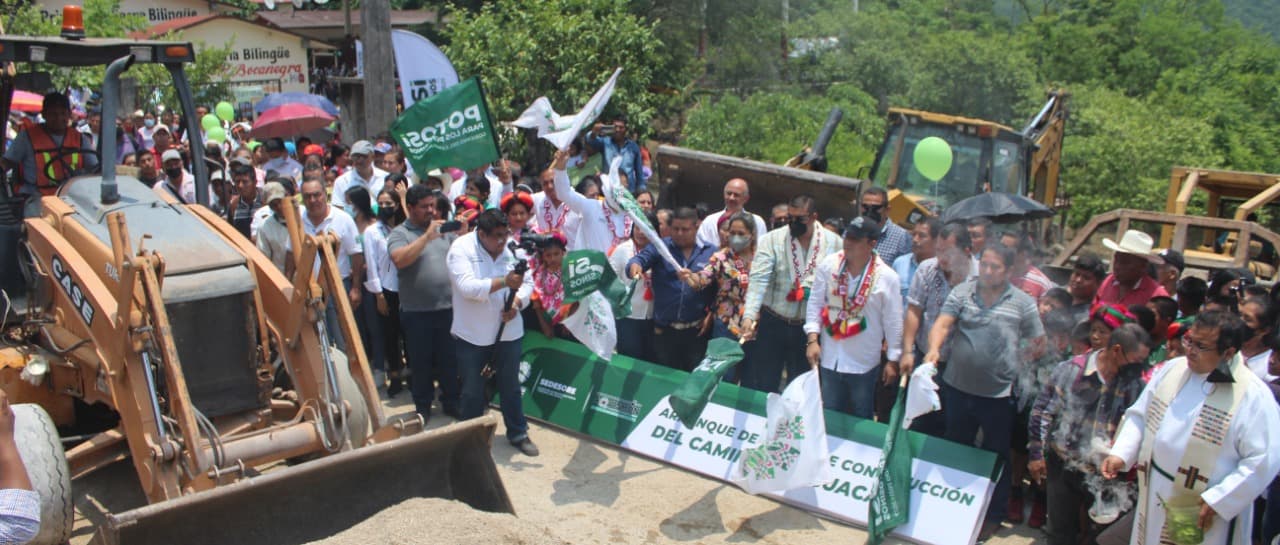 INICIA ALCALDE Y GOBERNADOR PAVIMENTACIÓN DE CARRETERA El presidente municipal Cuahutémoc Balderas Yáñez y el gobernador José Ricardo Gallardo Cardona iniciaron este mediodía la pavimentación de la carretera de “El aguacate” a “Tanquizul”, a realizarse con una inversión bipartita de cuarenta millones de pesos, para beneficiar a varias localidades serranas. El banderazo se dio en un marco de colorido, aderezado por la elegancia de las mujeres tenek, quienes –junto con los pobladores, entre ellos decenas de niños- recibieron a los gobernantes con collares bordados, danzas, y cartelones de agradecimiento, por hacer realidad una obra que permitirá enlazar diversas rutas. El alcalde Cuahutémoc Balderas Yáñez –en su discurso- refrendó el compromiso de seguir trabajando como un aliado del Gobierno del Estado, para convertir en hechos aquellas demandas de los aquismonenses, y subsanar esas necesidades que a través de los años otros gobiernos ignoraron.