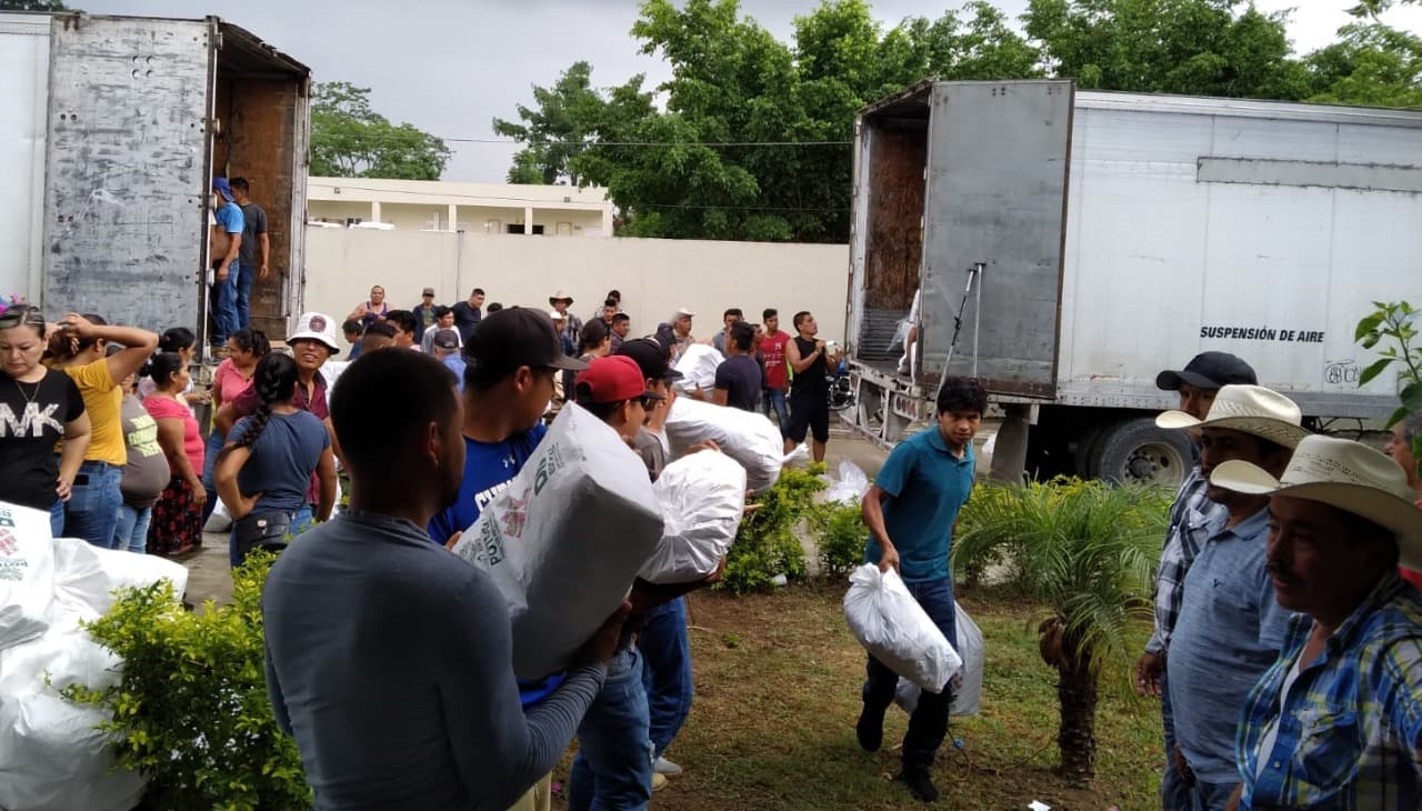 REPARTIRÁN EN LAS COMUNIDADES DESPENSAS DEL PLAN ALIMENTARIO Una vez más la unidad existente hacia el interior del Ayuntamiento de Aquismón entre funcionarios y empleados municipales quedó de manifiesto el pasado domingo, cuando a pesar de ser día inhábil, muchos de ellos acudieron a colaborar durante varias horas. El propósito era descargar desde enormes camiones, los paquetes correspondientes al Programa alimentario de despensas, que a partir de esta semana serán repartidas de acuerdo con la calendarización, a aquellas personas que por su condición social o económica las requieran. El alcalde Cuahutémoc Balderas Yáñez agradeció ese gesto de colaboración y la actitud participativa del personal del gobierno local, lo que refleja que se continúa haciendo equipo cuando se trata de acciones de servicio a la ciudadanía.