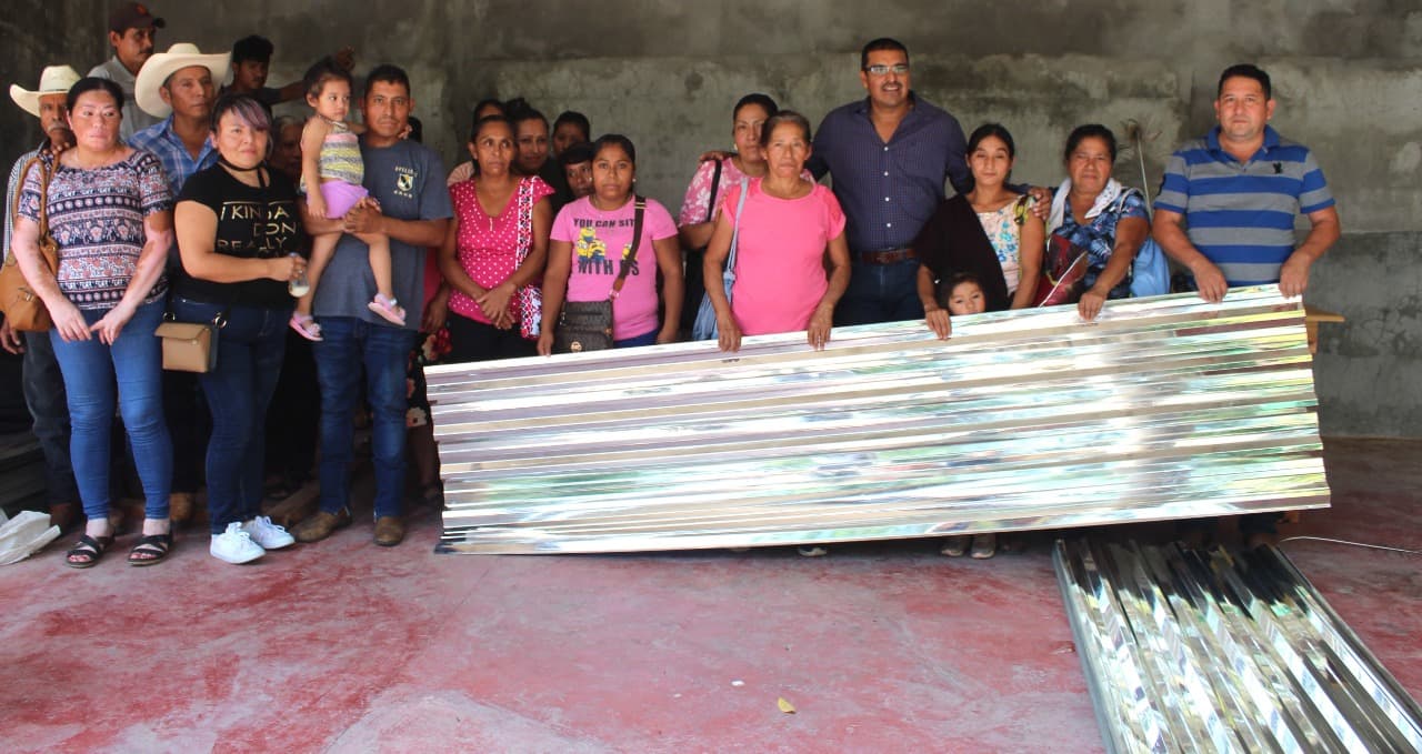 El presidente municipal Cuahutémoc Balderas Yáñez entregó esta mañana un millar de láminas, distribuido en diversos paquetes, en apoyo de personas de escasos recursos de las localidades La brecha, Paxalja, La cuesta, La mesa Tanzozob, El mirador, y Tanquizul.