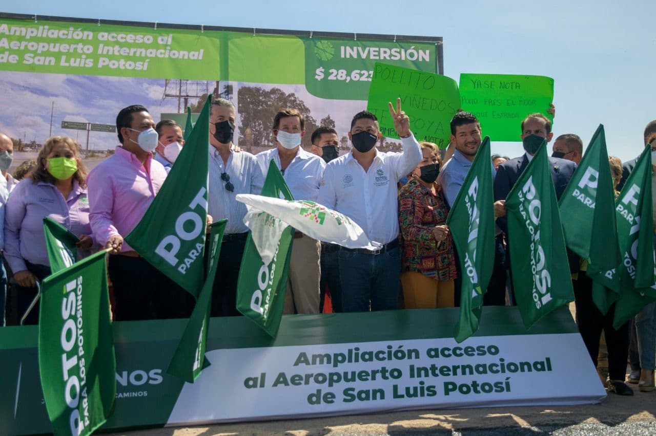 Con la ampliación del camino hacia el Aeropuerto Internacional “Ponciano Arriaga” se contempla desde ya el desarrollo de proyectos para la construcción de hoteles, zonas comerciales y el impulso a la atracción de nuevas empresas para San Luis Potosí, afirmó el gobernador del Estado, Ricardo Gallardo Cardona, tras dar el banderazo de arranque de dicha obra.