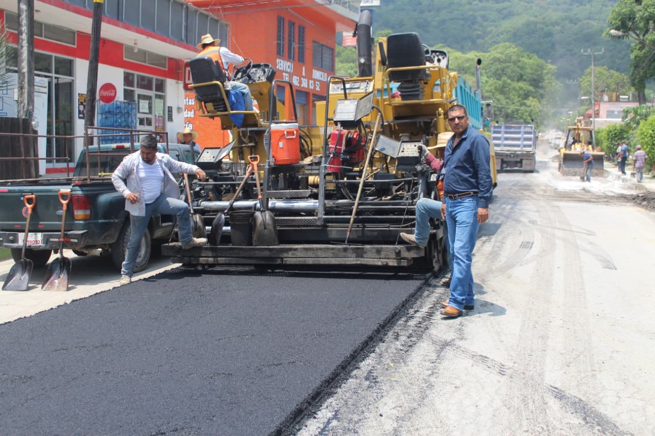 La avenida “Damián Carmona”, uno de los dos principales accesos a Aquismón, es rehabilitada con encarpetado de asfalto para facilitar el recorrido de los vehículos, toda vez desaparecerán las imperfecciones que existían; la tarea fue supervisada esta mañana por el presidente municipal Cuahutémoc Balderas Yáñez, quien expresó su intención de que los visitantes a las Fiestas Tradicionales de Santiago y Santa Ana –del 23 al 26 de julio- se lleven una buena impresión.