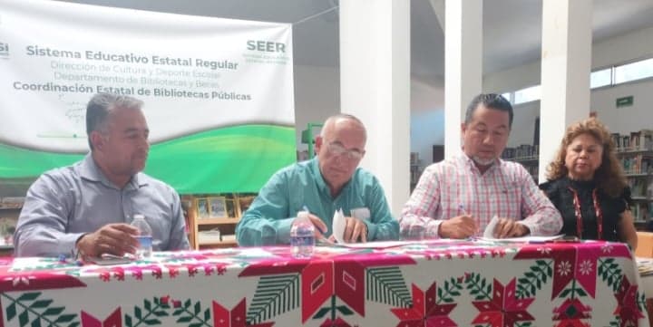 Este mediodía el Ayuntamiento y el Sistema Educativo Estatal Regular (SEER) firmaron un convenio encaminado a la modernización y el equipamiento de las bibliotecas de Aquismón, concretamente las ubicadas en la cabecera municipal y Tamapatz.