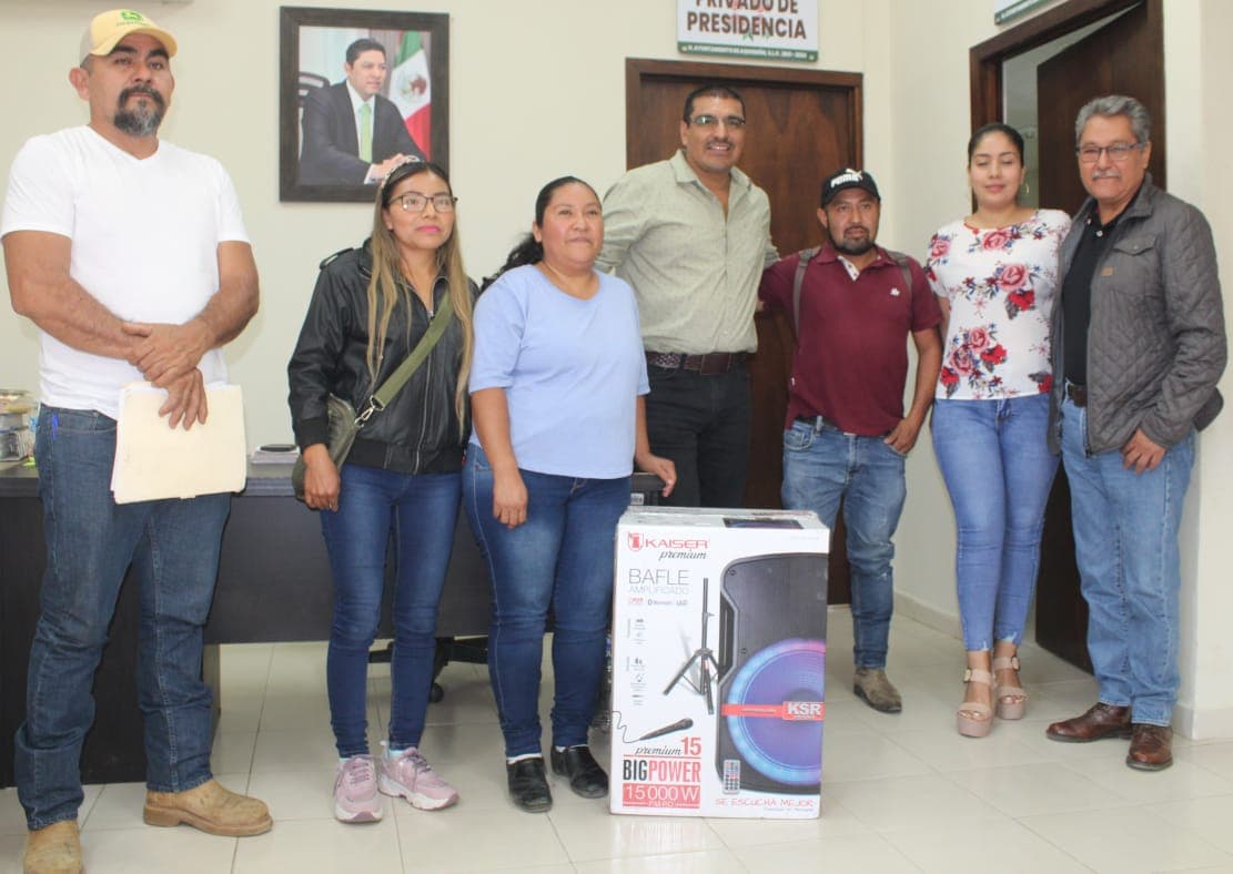 Dentro de la intensa jornada de atención ciudadana que suele desarrollarse cada lunes en la Presidencia Municipal, el alcalde Cuahutémoc Balderas Yáñez resolvió el requerimiento de la Telesecundaria de San Rafael Tampaxal, al entregarles un equipo de sonido.