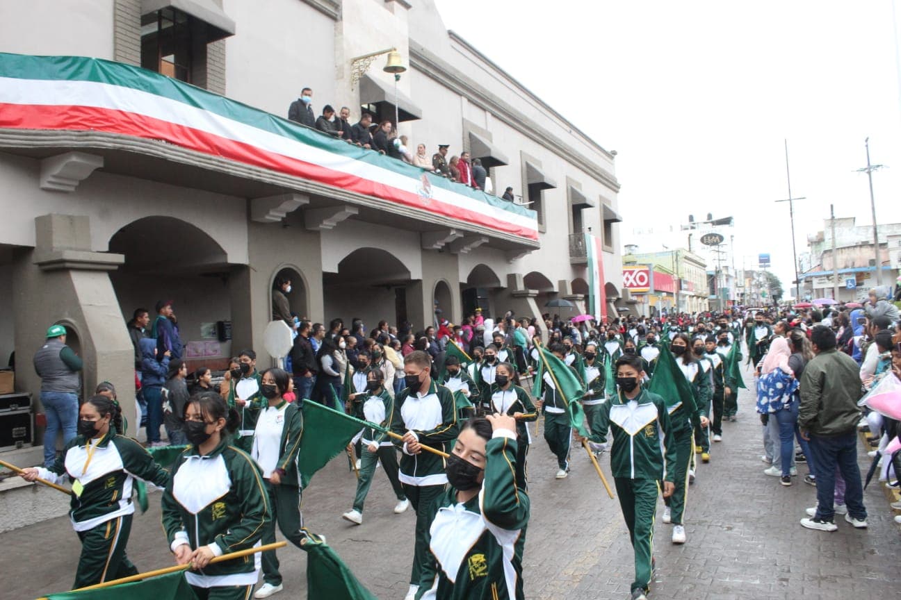 Posterior a ello, el Presidente Municipal David Armando Medina Salazar acompañado de su esposa la Presidenta del SMDIF, Ena Avendaño Uscanga, así como funcionarios encabezaron los contingentes con el inicio del desfile que recorrió parte del boulevard México-Laredo, calle Juárez y culminó frente al palacio municipal.