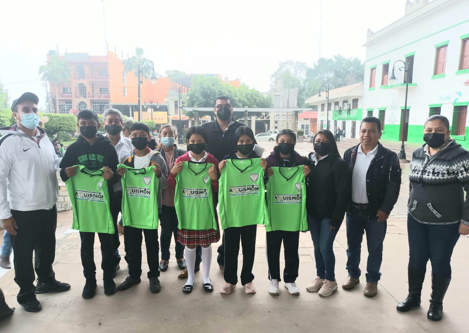 El apoyo del Ayuntamiento a la educación y al deporte -sobre todo en los niveles que involucran a niños- quedó de manifiesto una vez más esta mañana cuando el presidente municipal Cuahutémoc Balderas Yáñez entregó paquetes de uniformes de baloncesto y atletismo.