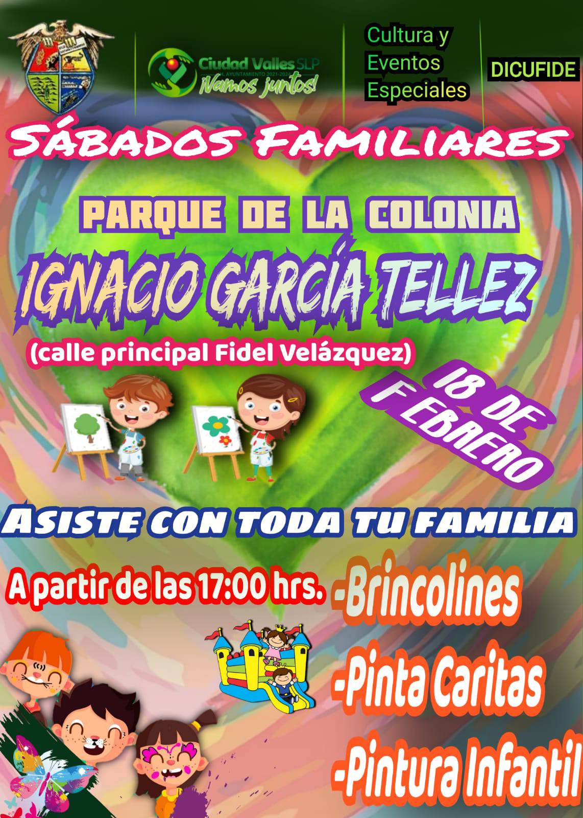 El Programa de Sábados Familiares, impulsado por el Ayuntamiento de Ciudad Valles, siguen acercando a la población actividades para el fomento de la convivencia y el rescate de los espacios públicos, en esta ocasión estarán visitando la colonia Ignacio García Téllez.