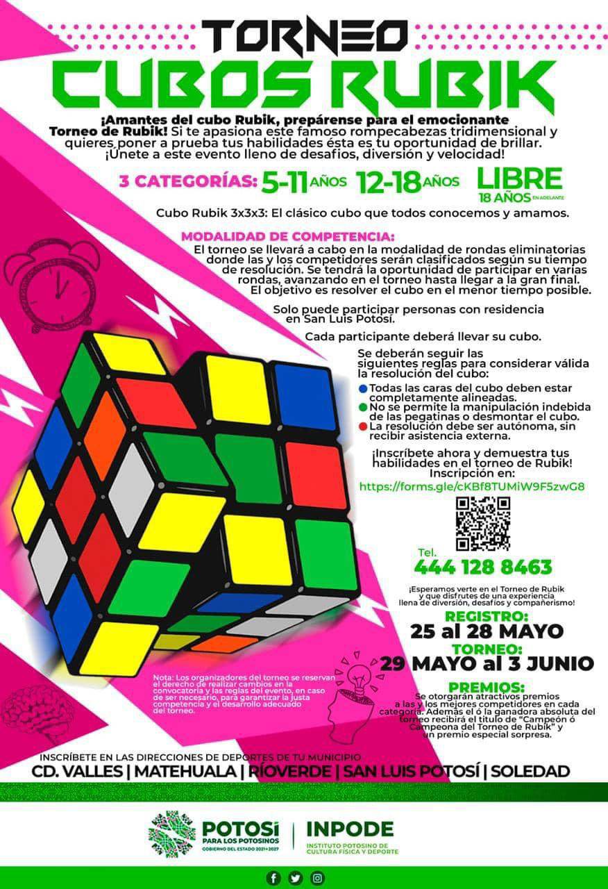 Solo puede participar personas con residencia en San Luis Potosí. Cada participante deberá llevar su cubo. Se deberán seguir las siguientes reglas para considerar válida la resolución del cubo:
