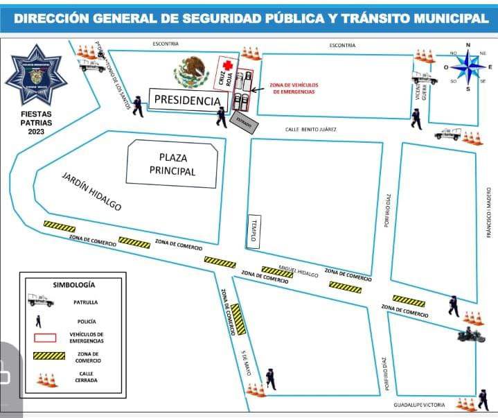 Durante este 14 y 15 de septiembre, se preparan medidas para controlar el flujo peatonal en la plaza principal así como responder a cualquier situación que pueda presentarse, evitando o reduciendo cualquier riesgo o amenaza a la seguridad durante las celebraciones.
