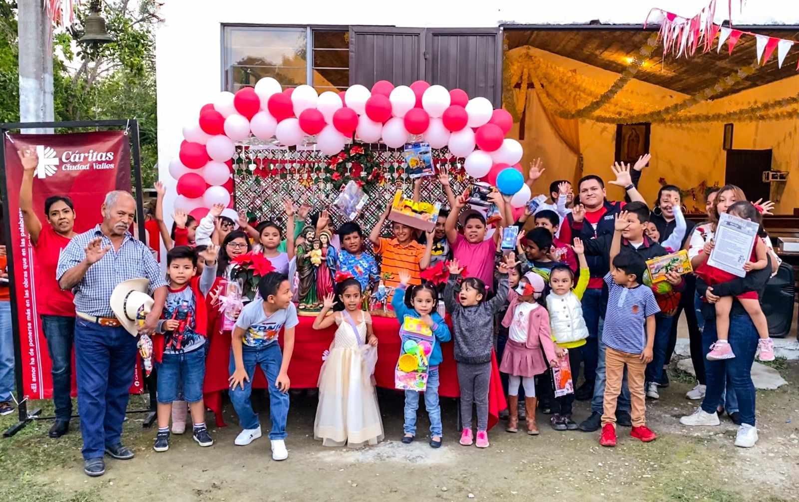 El día de ayer, Cáritas de Ciudad Valles, una Institución de la Iglesia Católica que tiene como fin ayudar, a través de algunos programas, a personas en situación vulnerable en la Diócesis de Ciudad Valles, llevó a cabo una posada solidaria con niños y familias del Ejido Gustavo Garmendia.