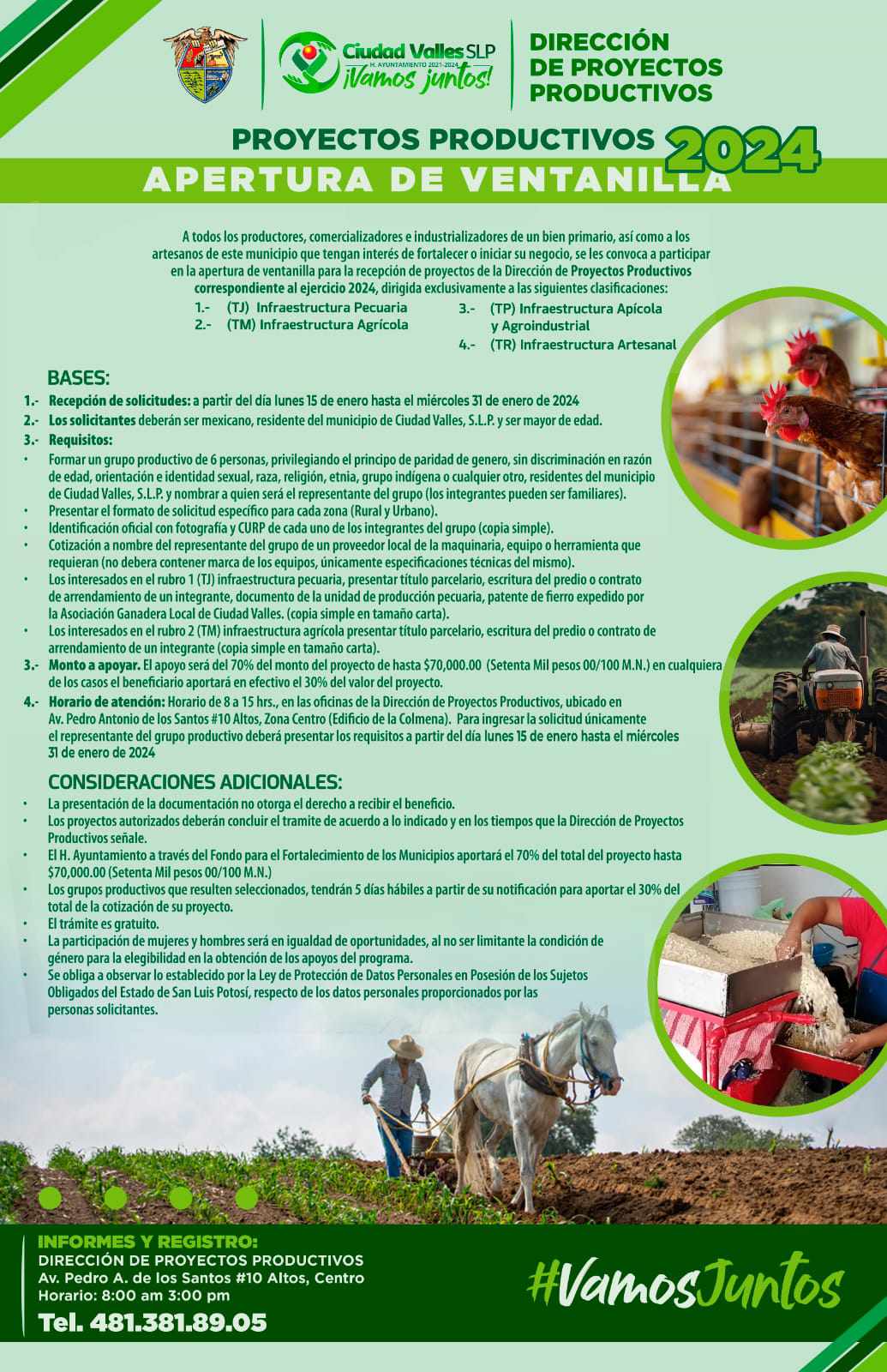 AYUNTAMIENTO DE CIUDAD VALLES INVITA A PARTICIPAR EN LA CONVOCATORIA DE PROYECTOS PRODUCTIVOS 2024
