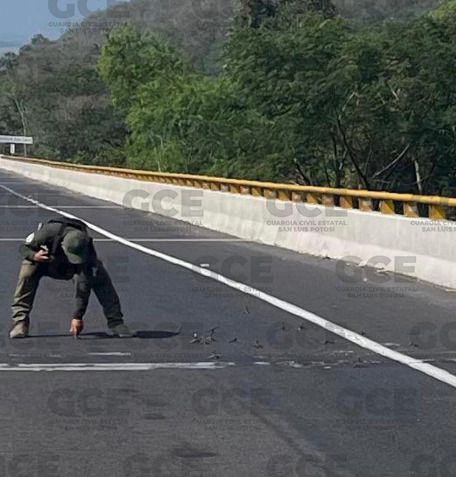 Los hechos se suscitaron tras los dispositivos de la GCE sobre este eje carretero, los uniformados detectaron a dos masculinos a lo lejos, quienes colocaron objetos de varilla conocidos como “poncha llantas”, de inmediato se desplegaron hacia el kilómetro 054+700 de la autopista Ciudad Valles-Rayón.