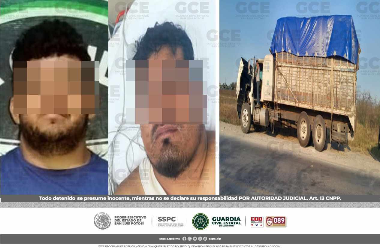Como resultado del actuar inmediato de las autoridades de la GCE, el afectado fue auxiliado y trasladado a recibir atención médica, también se detuvo a Martín “N” de 32 años de edad y a Santos “N” de 35 años, asegurando el producto del robo. Cabe señalar que ambos se vinculan al robo de vehículos con violencia en la región Huasteca, por lo que fueron puestos a disposición de la Fiscalía General del Estado.