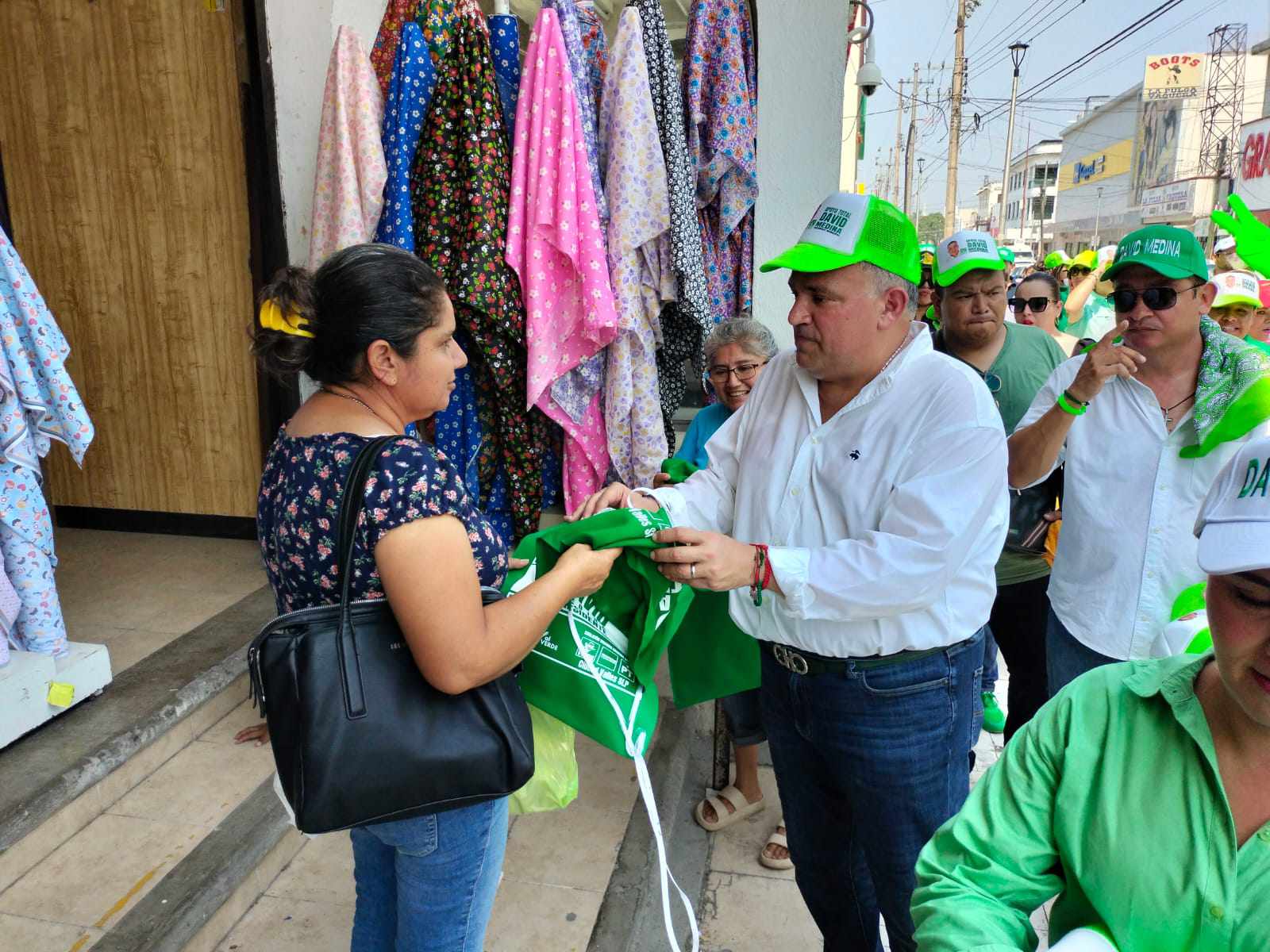 El candidato a la Presidencia Municipal por la coalición «Sigamos Haciendo Historia en San Luis Potosí», David Armando Medina Salazar, llevó a cabo un recorrido por la Avenida Hidalgo, arteria principal del centro de la ciudad, donde saludó a los ciudadanos que transitaban por la zona y entabló conversaciones con ellos acerca de su proyecto de continuidad para el progreso de Ciudad Valles.