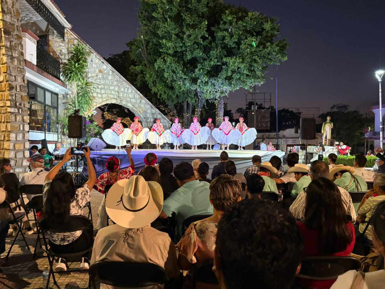 La celebración, realizada en la explanada principal a partir de las 6:00 p.m., reunió a muchas personas que disfrutaron de una noche cultural protagonizada por la destacada participación de tríos huapangueros y parejas de baile regional. Entre los autoridades se encontraban Esmeralda Zumaya Martínez, directora de Cultura; el regidor César Ramos y el profesor Gil Sánchez Zárate, coordinador general de la Galería «Arte y Tradición».