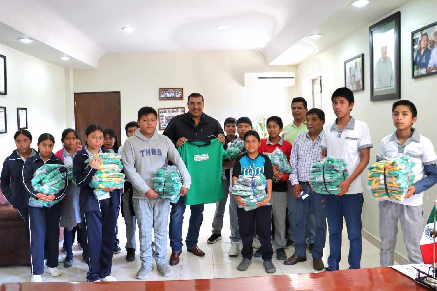En un firme refrendo al compromiso de fomentar el gusto por el deporte entre la juventud, el Presidente Municipal de Aquismón, Cuauhtémoc Balderas Yáñez, llevó a cabo la entrega de uniformes deportivos a 90 alumnos de diversas instituciones educativas de nivel Telesecundaria, pertenecientes a la zona 87.