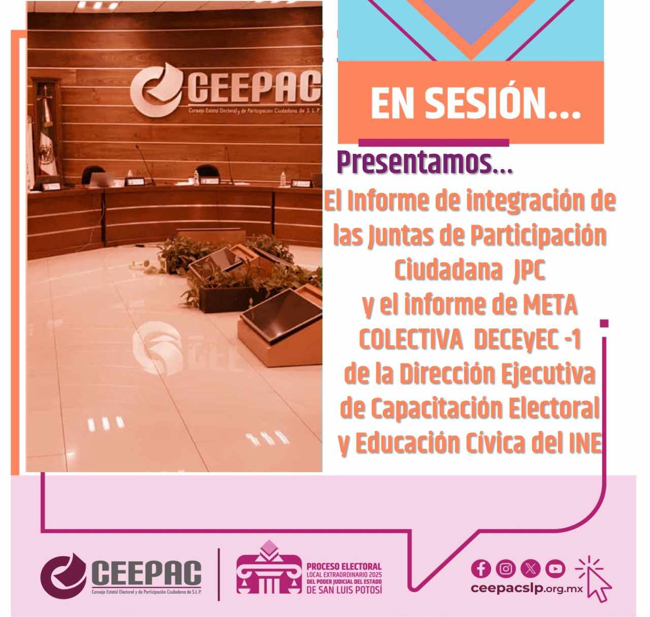 El Consejo Estatal Electoral y de Participación Ciudadana (CEEPAC) en sesión presentó una serie de informes derivados de sus atribuciones, destacando el informe final de integración de Juntas de Participación Ciudadana (JPC).