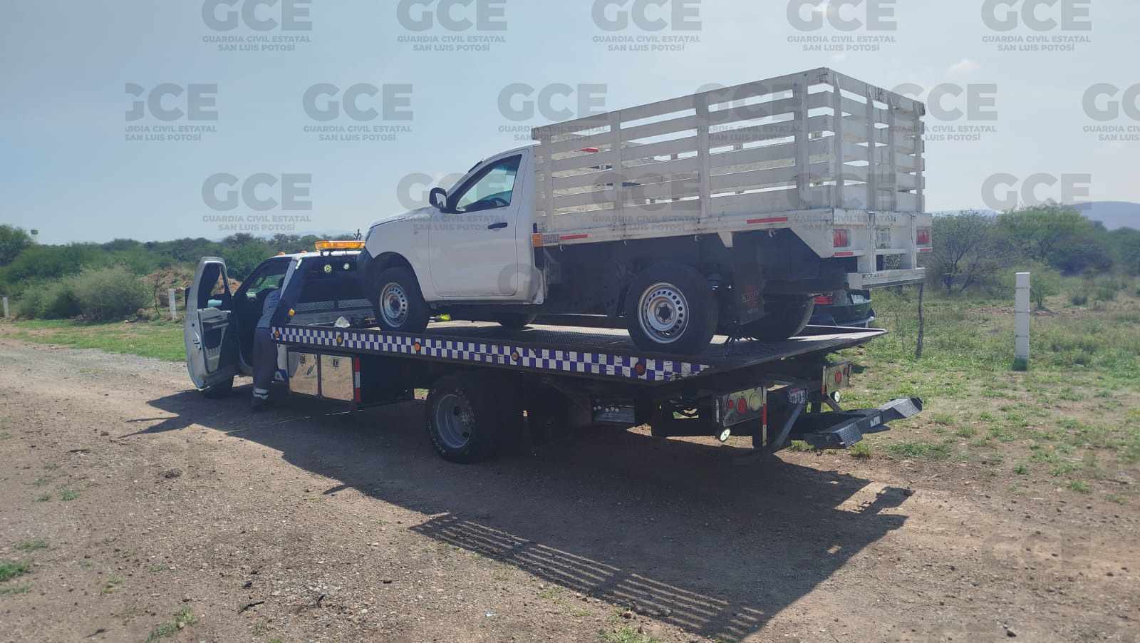 S.L.P.- La División Caminos de la Guardia Civil Estatal aseguró una camioneta con placas sobrepuestas que estaba abandonada en la carretera a México, además de asegurarse en colaboración con autoridades federales un tractocamión con 63 mil litros de hidrocarburo.
