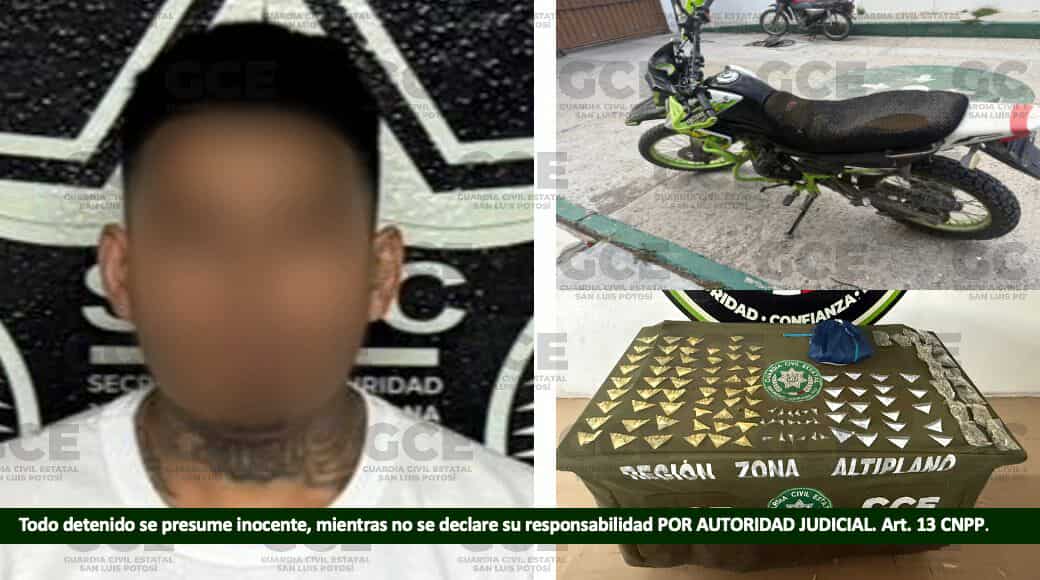 Los operativos coordinados de la Guardia Civil Estatal en el municipio de Matehuala, permitieron la detención de Cristopher “N” de 22 años, vinculado a actividades que afectan la convivencia y bienestar de las y los potosinos.