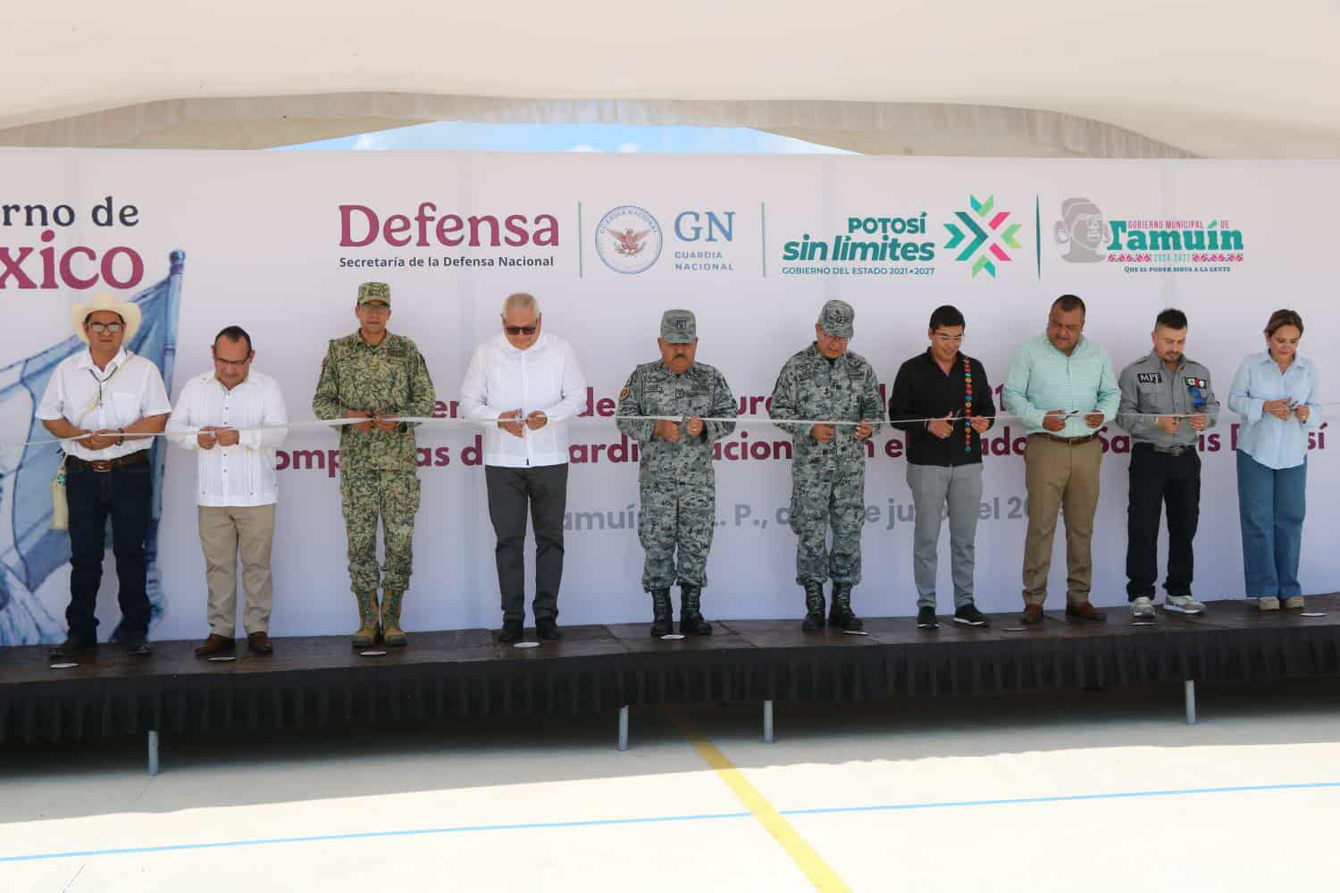 La ceremonia contó con la importante presencia del General, Gerardo Serna Melchor, Coordinador Territorial de la Región Norte, los alcaldes anfitriones, Marcelino Bautista Rincón de Tamuín y Silvia Medina Burgaña, de Tampamolón, entre otras autoridades de los Poderes Legislativo y Judicial y de los tres ordenes de Gobierno.