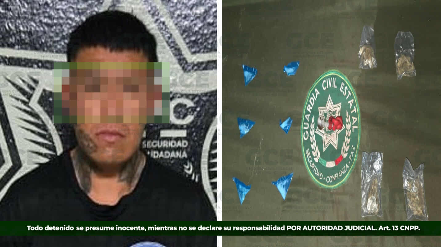 El operativo Altiplano Seguro, implementado para seguir construyendo un estado en orden, dio como resultado, la detención de Francisco “N” de 22 años en la carretera a Matehuala, en las inmediaciones de la comunidad El Huizache, asegurándole seis dosis de “cristal” y cuatro bolsas de marihuana.