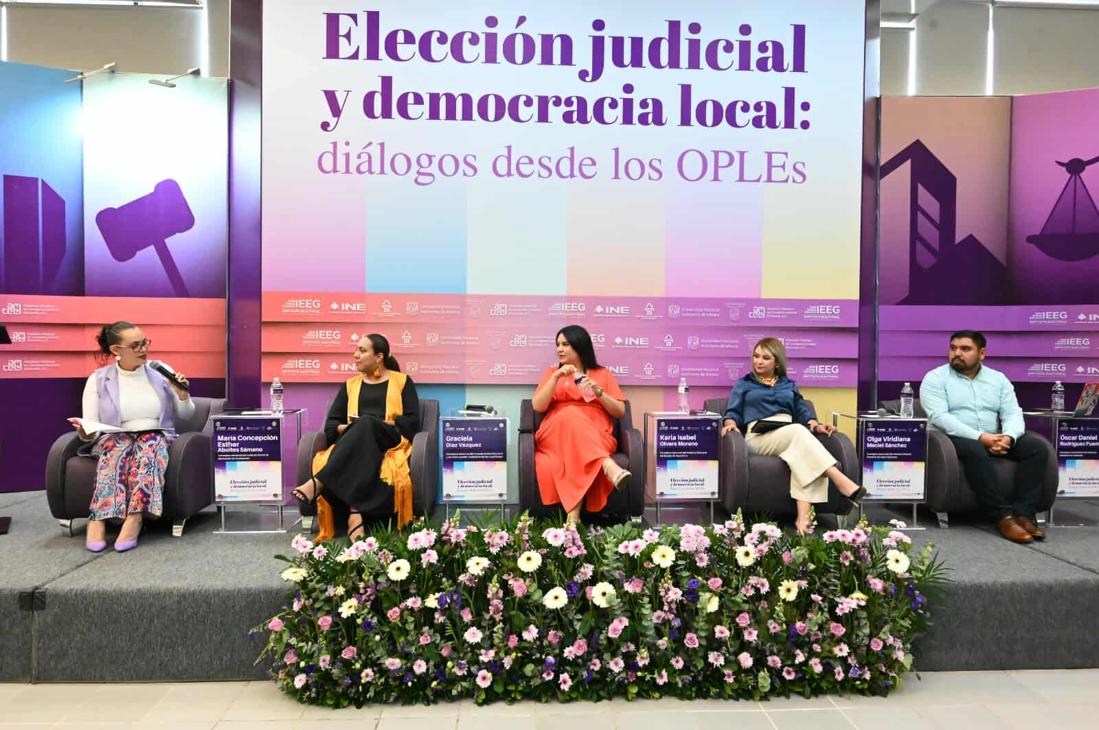 En la moderación estuvo la consejera electoral del Instituto Electoral del Estado de Guanajuato, María Concepción Esther Aboites Sámano. En el panel las y los panelistas abordaron los retos y aprendizajes en torno a la participación política de las mujeres y de las personas pertenecientes a grupos en situación de vulnerabilidad. Díaz Vázquez resaltó la importancia de continuar el diálogo entre organismos electorales y legislativos para generar acciones afirmativas y reflexionó acerca de las reglas de la elección judicial.