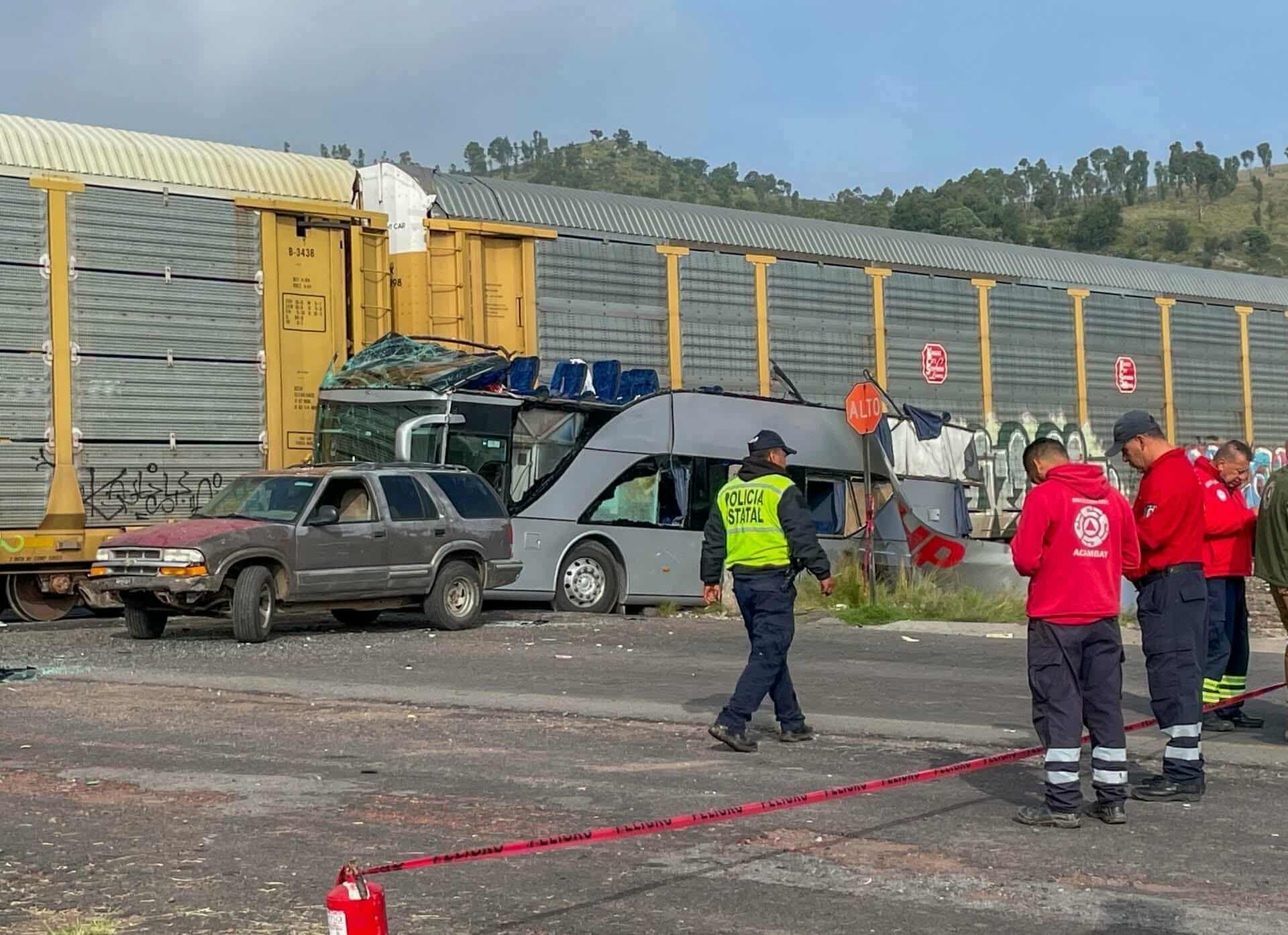 Tragedia en el Edomex, tren destroza autobús de pasajeros y deja al menos 9 personas sin vida y más de 40 lesionados; el chofer quiso ganarle el paso
