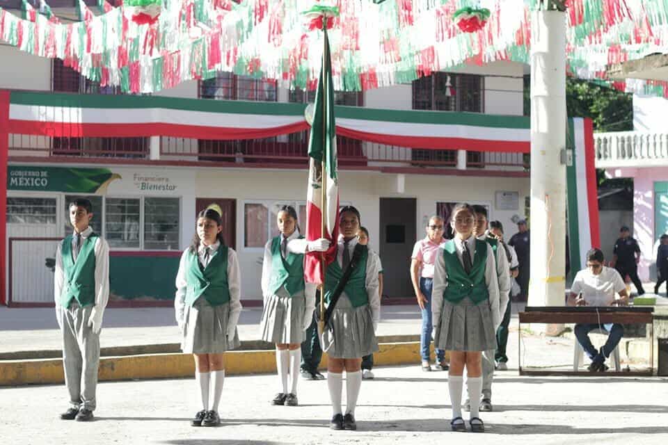 Este lunes se realizaron los Honores a la Bandera en la Delegación de Huichihuayán, acto cívico que contó con la participación de alumnos y docentes de la Escuela Secundaria Nicolás Zapata.