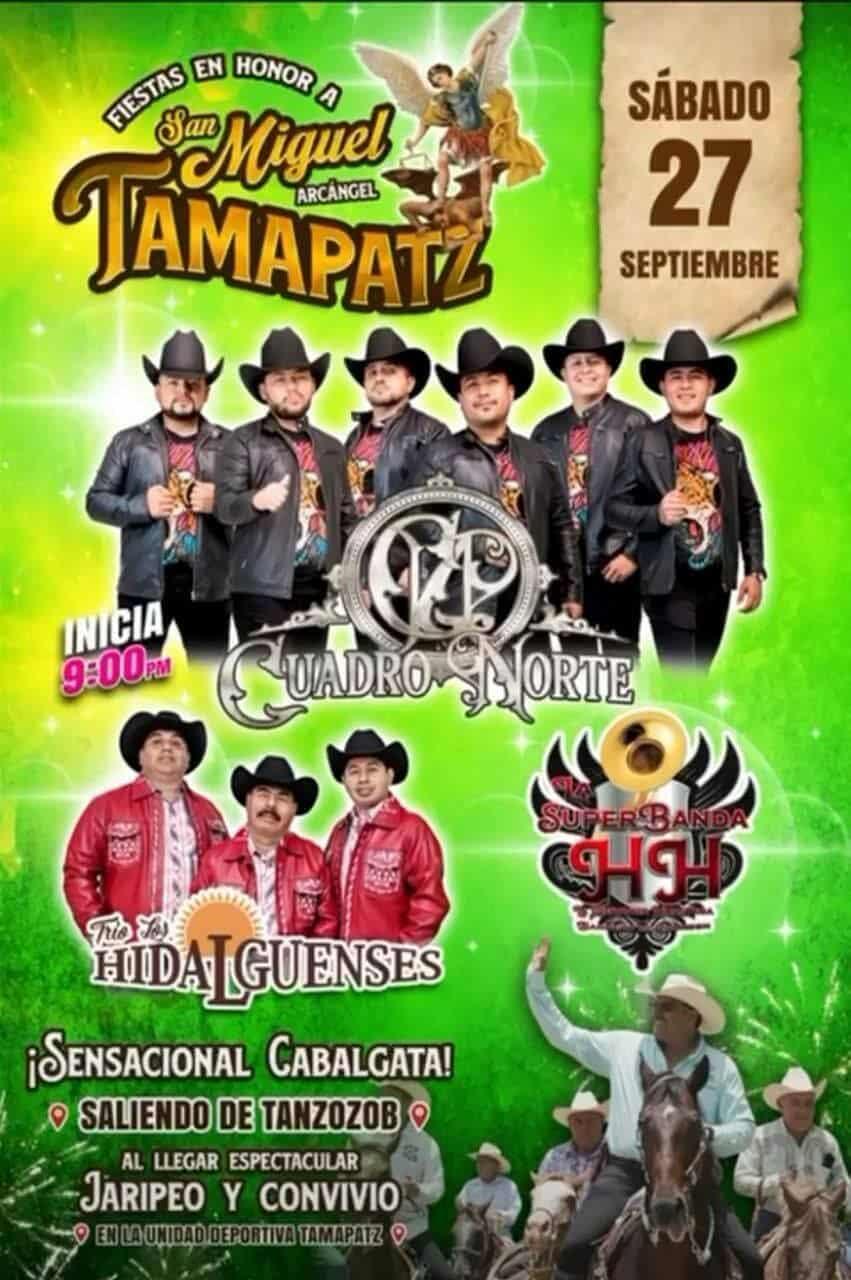 Por la noche grandioso baile con las agrupaciones #CuadroNorte, el Trío #LosHidalguenses y la «Super Banda Hermosa Huasteca».