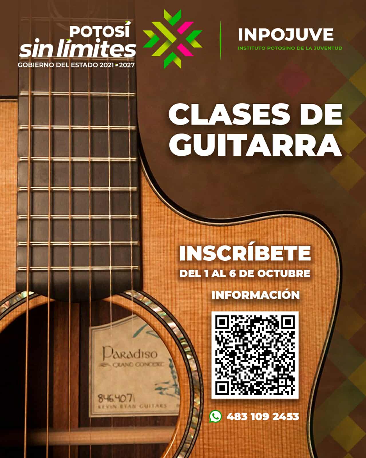 Con el objetivo de impulsar sin límites el desarrollo artístico entre la juventud potosina, el Instituto Potosino de la Juventud (Inpojuve) abrió inscripciones para su curso de guitarra, dirigido a jóvenes de 12 a 29 años. Como apoyo adicional, se prestarán instrumentos durante las clases, eliminando la necesidad de contar con uno propio.