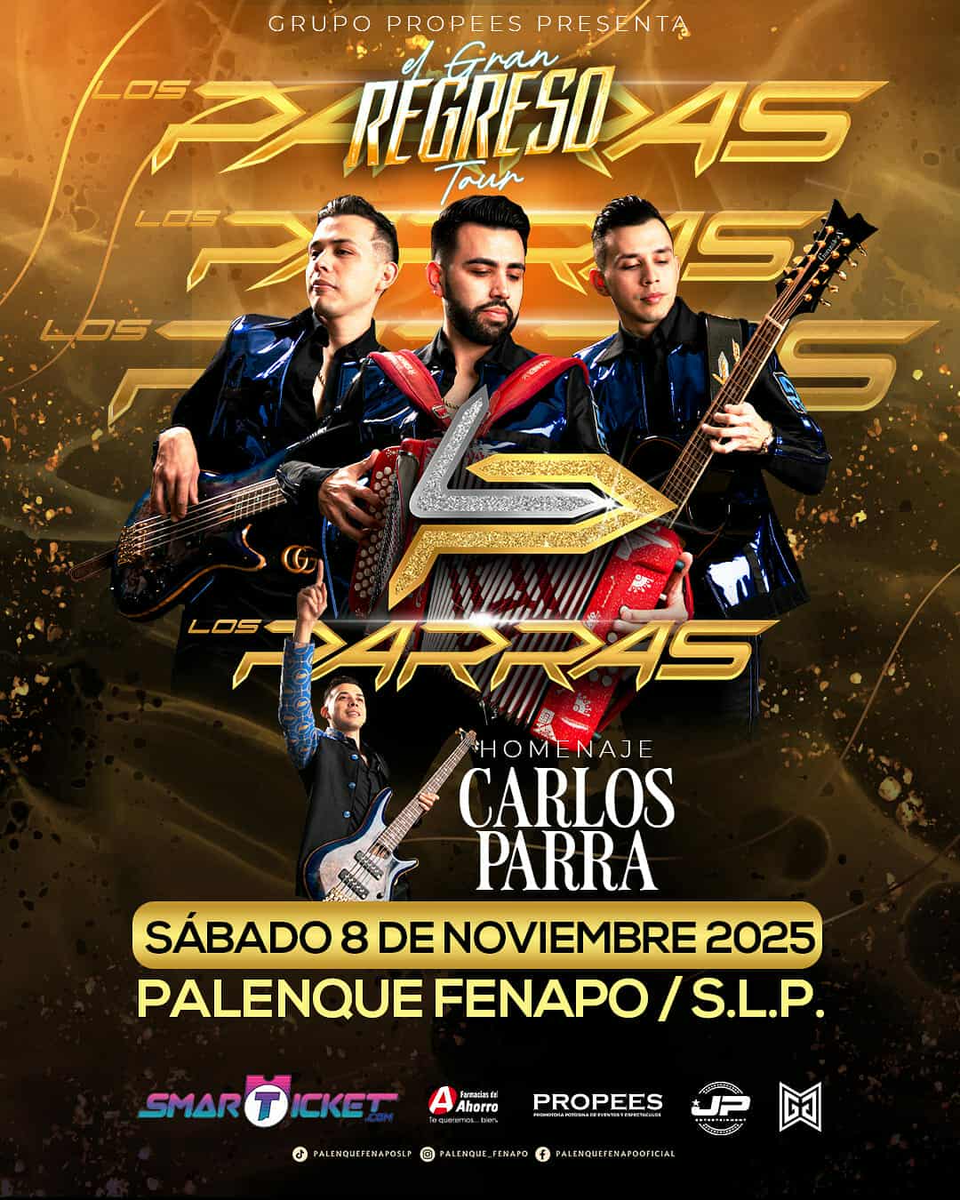Tras agotar localidades en Guadalajara, Los Parras anuncian su presentación en San Luis Potosí con “El Gran Regreso Tour”, una gira que honra la memoria de Carlos Parra, hermano y compañero de la agrupación. El concierto se llevará a cabo el 8 de noviembre en el Palenque de la Feria Nacional Potosina (Fenapo), ofreciendo a los asistentes un espectáculo lleno de música, recuerdos y emociones sin límites.