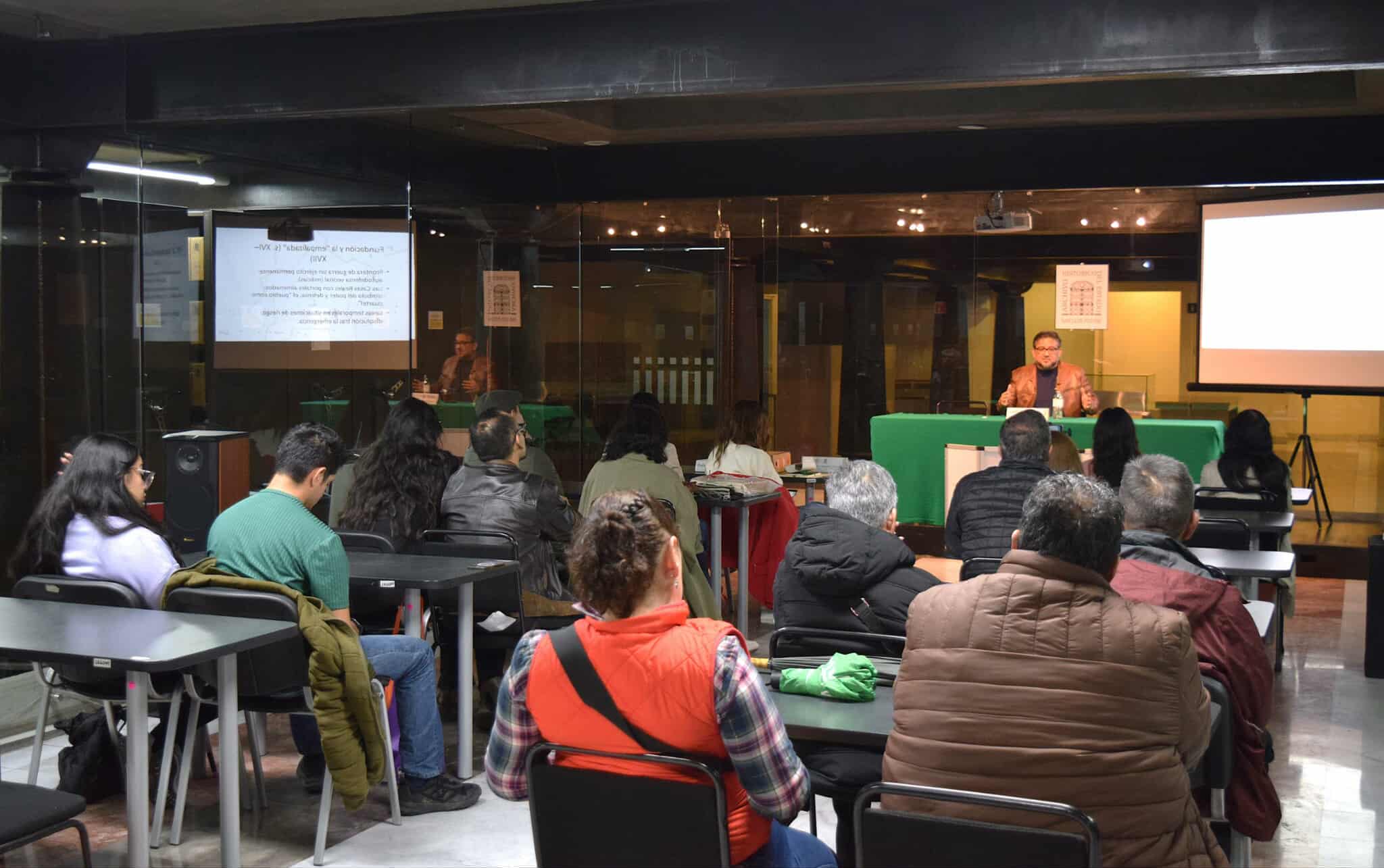 Durante su exposición, el investigador explicó cómo las fortificaciones y cuarteles del territorio potosino fueron adaptándose a las necesidades de la defensa, vigilancia y orden urbano, reflejando las transformaciones políticas y sociales de la región a lo largo del tiempo.
