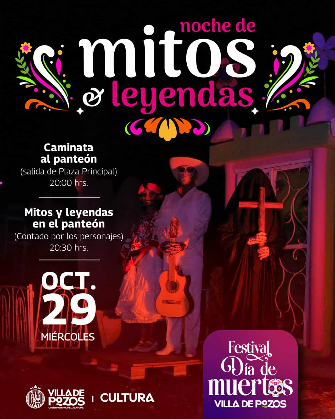 Como parte de las actividades del Festival de Día de Muertos 2025, el Gobierno Municipal de Villa de Pozos invita a la ciudadanía a participar en una serie de eventos culturales, recreativos y deportivos que se realizarán el próximo 29 de octubre, con el objetivo de preservar las tradiciones mexicanas y fortalecer la convivencia
