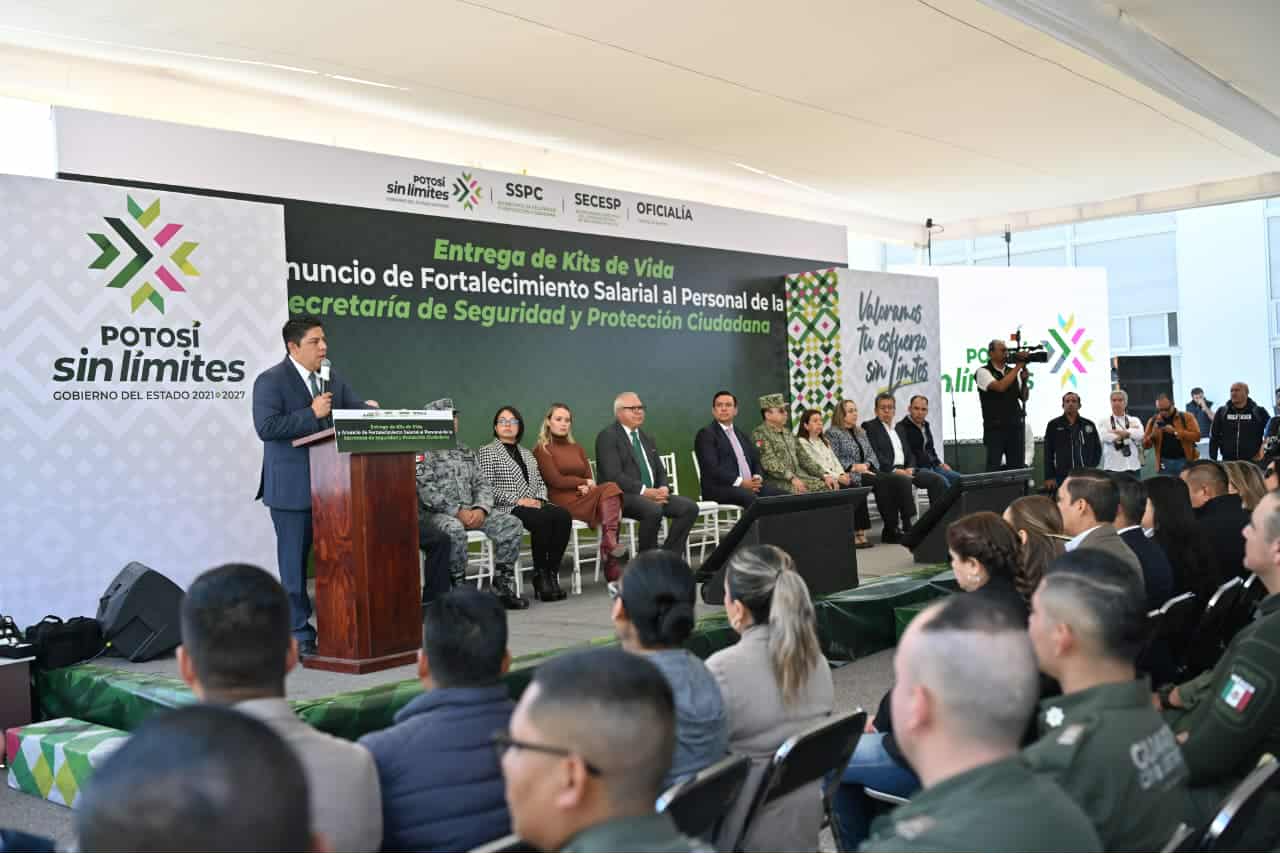 • El aumento es un reconocimiento para toda la Secretaría, que incluirá a todas y todos los trabajadores operativos y administrativos, al mantener a San Luis Potosí entre los estados más seguros del país.