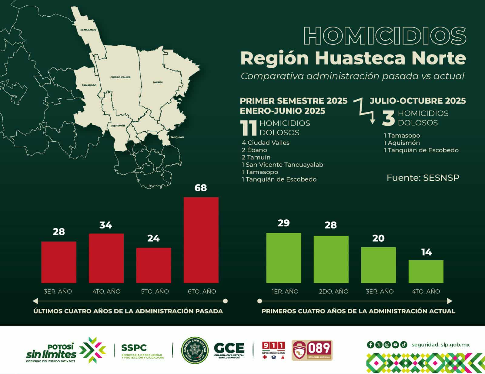 REDUCCIÓN HISTÓRICA DE HOMICIDIOS DOLOSOS EN LA HUASTECA NORTE GRACIAS AL TRABAJO DEL ESTADO