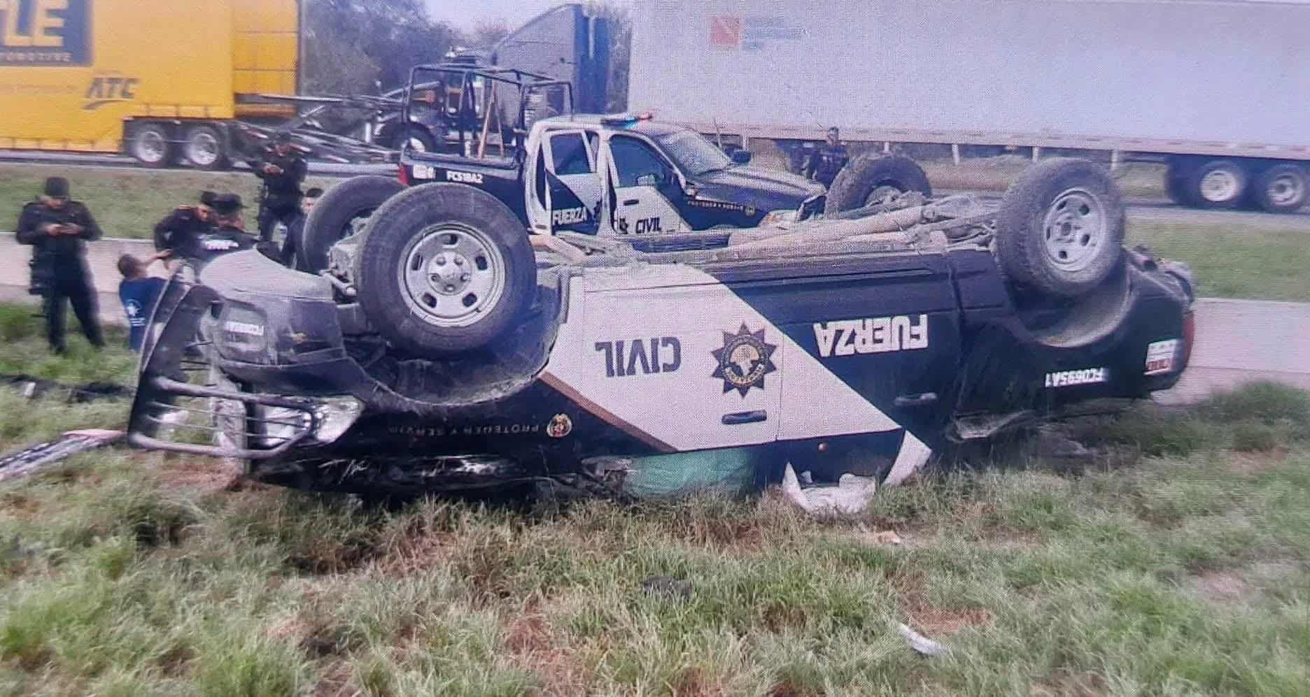 Al menos siete elementos de Fuerza Civil terminaron lesionados luego de que la patrulla en la que viajaban volcara de manera aparatosa sobre la autopista Periférico, en Escobedo, Nuevo León.