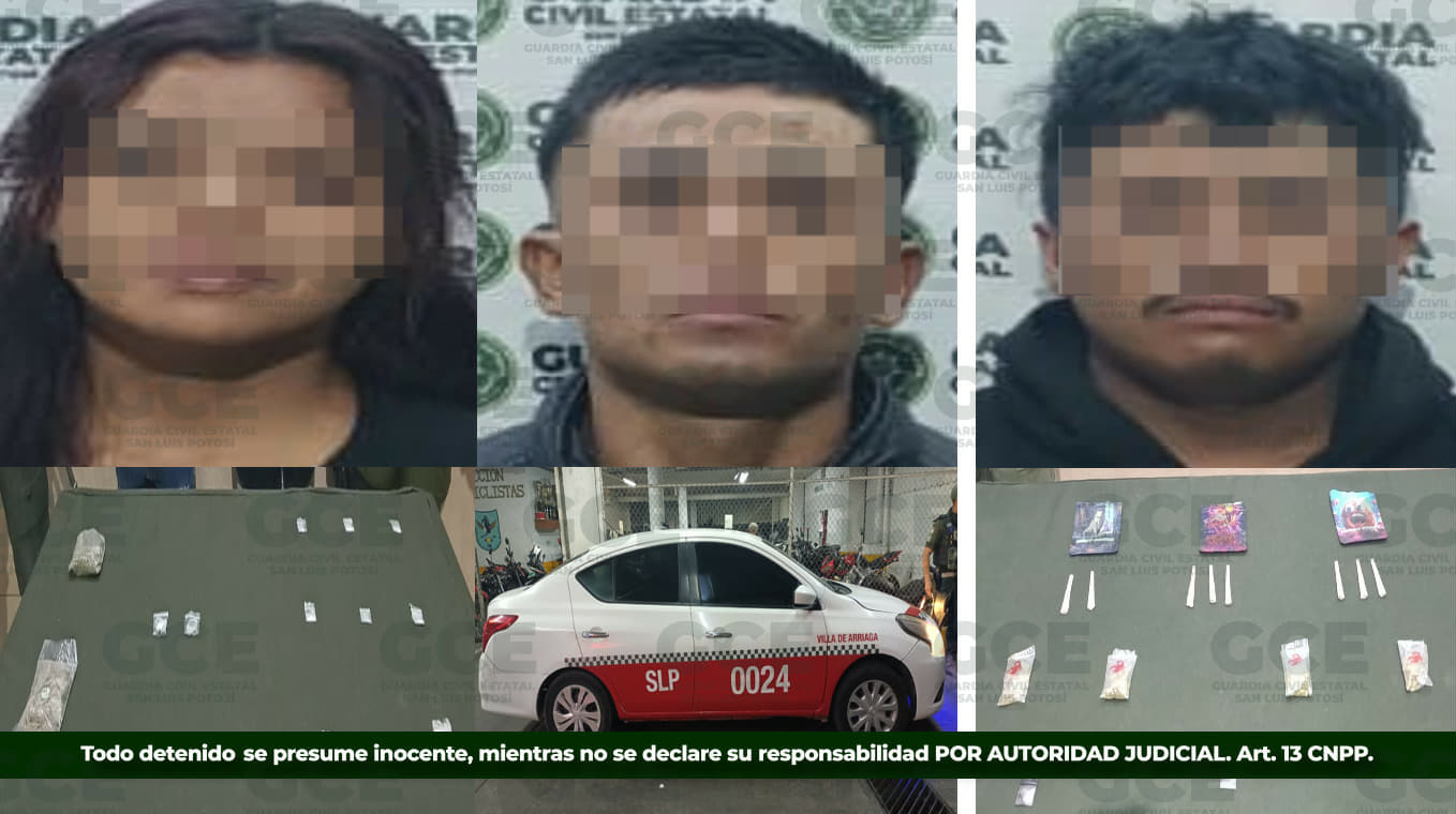 A los presuntos, se les aseguró ocho dosis de “cristal”, dos bolsas de marihuana y dos dosis de cocaína en la zona centro del municipio señalado.