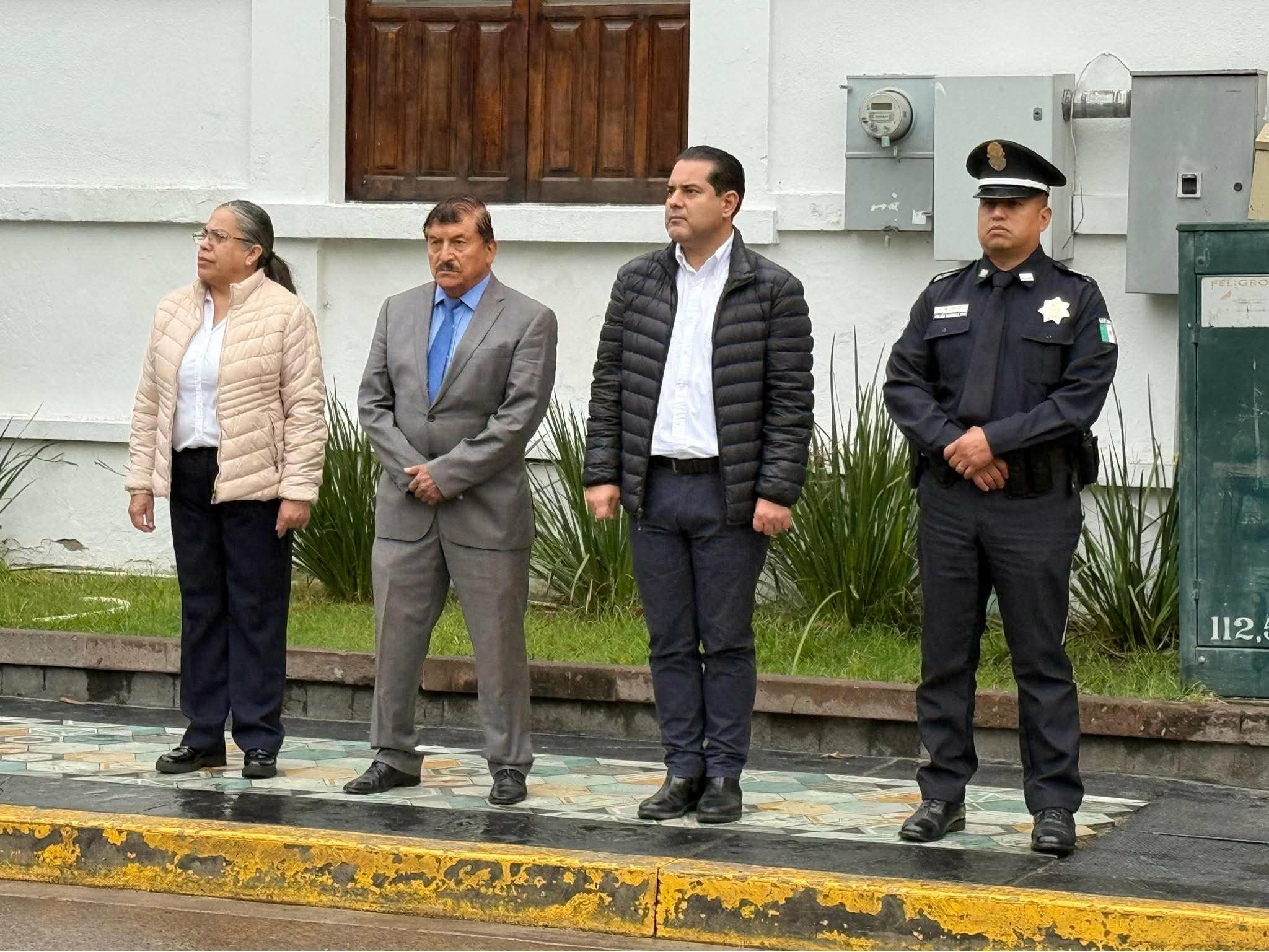 En representación del presidente municipal, Arnulfo Urbiola Román, quien actualmente se encuentra en gira de trabajo en Estados Unidos con motivo de la Caravana de Paisanos, el secretario del Ayuntamiento, Víctor Ángel Mancilla Cervantes, fue el encargado de emitir el discurso oficial, destacando la importancia de mantener vivas las tradiciones cívicas y el respeto a los símbolos nacionales.