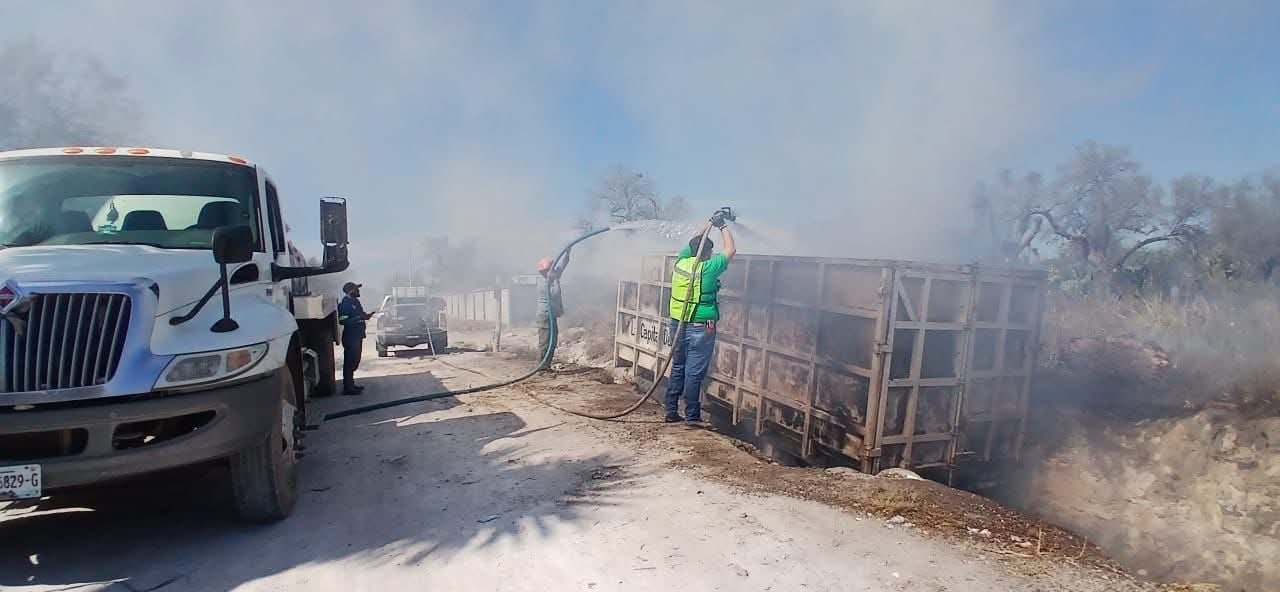 El Ayuntamiento de Rioverde, encabezado por el presidente municipal Arnulfo Urbiola Román, informa que la tarde de este sábado 3 de enero se atendió de manera oportuna un incendio provocado en un contenedor de basura en la delegación de Pastora, en coordinación con el H. Cuerpo de Bomberos de Rioverde y el área de Desarrollo Rural.