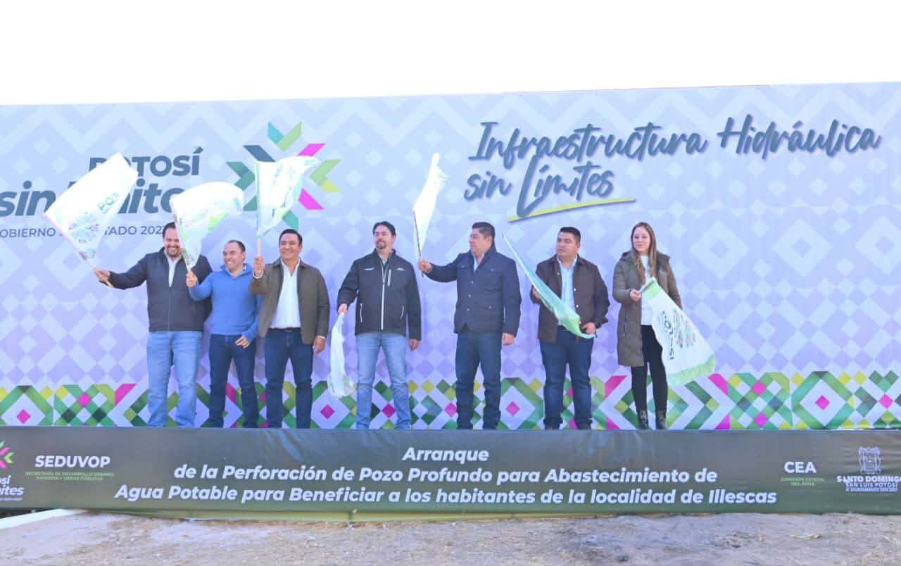 Con el frío de Illescas, Santo Domingo, el Mandatario Estatal arrancó la sustitución de mil 200 luminarias tipo Led que beneficiarán a las 33 localidades del municipio y dio el banderazo de inicio de la perforación del pozo profundo de 250 metros que brindará el agua en la región
