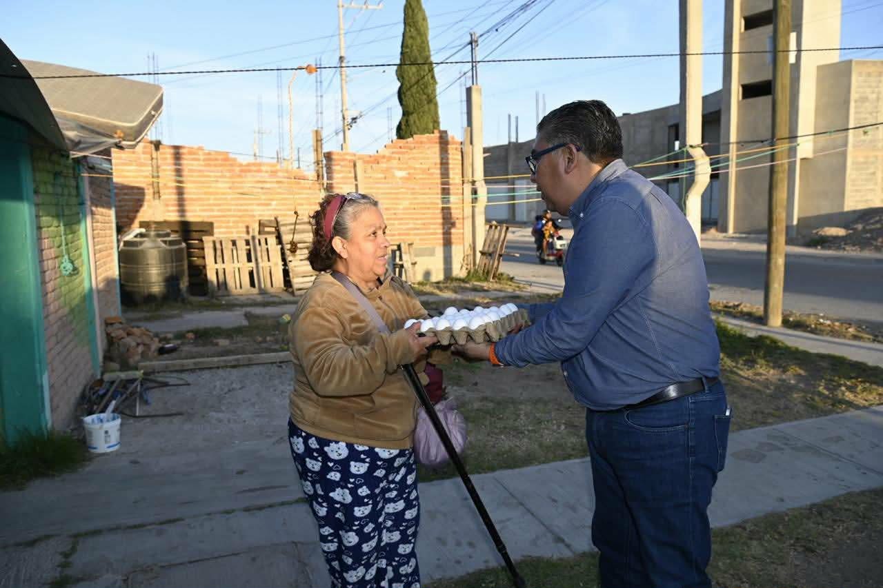 Juan Manuel Navarro Muñiz, Alcalde de Soledad de Graciano Sánchez, continuó este viernes con la entrega del programa alimentario emergente mediante la distribución de huevo como producto básico de alto valor nutricional, llevando este apoyo personalmente a los hogares de las colonias Nueve de Mayo, Primero de Mayo y Del Bosque, con una dinámica de cercanía con las familias y atención directa en territorio.