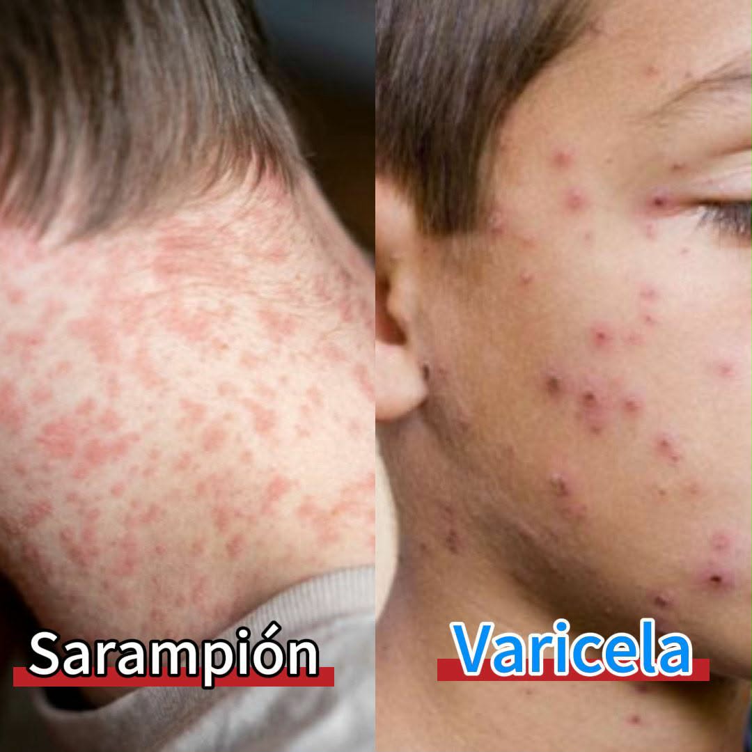 El sarampión se caracteriza por provocar fiebre alta, tos, ojos enrojecidos y la aparición de micro manchitas (salpullido) rojas en la piel, mientras que la varicela, al ser una enfermedad menos agresiva, suele manifestarse con fiebre leve y ampollas con líquido que generan intensa comezón.