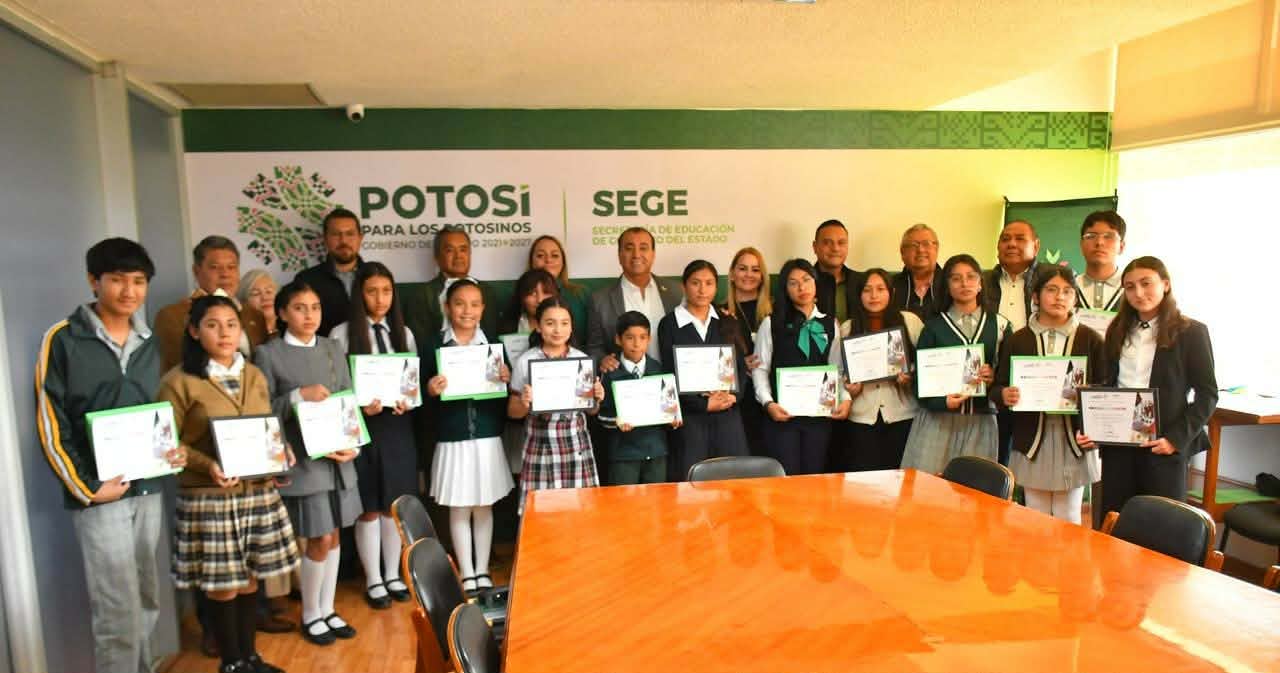 El titular de la dependencia, Juan Carlos Torres Cedillo, encabezó la entrega de 15 premios y reconocimientos a estudiantes que obtuvieron los tres primeros lugares en primaria y secundaria en la modalidad de expresión literaria. Destacó la importancia de fortalecer los valores cívicos desde las aulas y reafirmó que estas acciones reflejan el cambio que se vive y se siente en San Luis Potosí, consolidando la identidad nacional y el respeto por México.