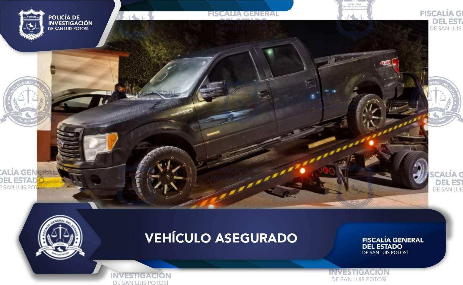 Durante acciones operativas, la Policía de Investigación (PDI) de la Fiscalía General del Estado de San Luis Potosí (FGESLP) aseguró un vehículo tipo pick-up en la colonia Valle de Santiago, en la capital potosina.